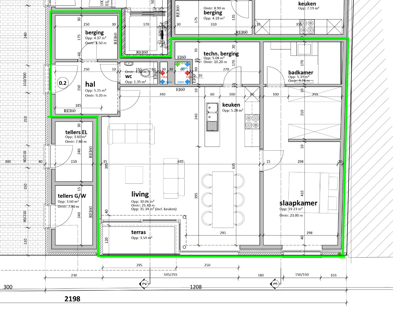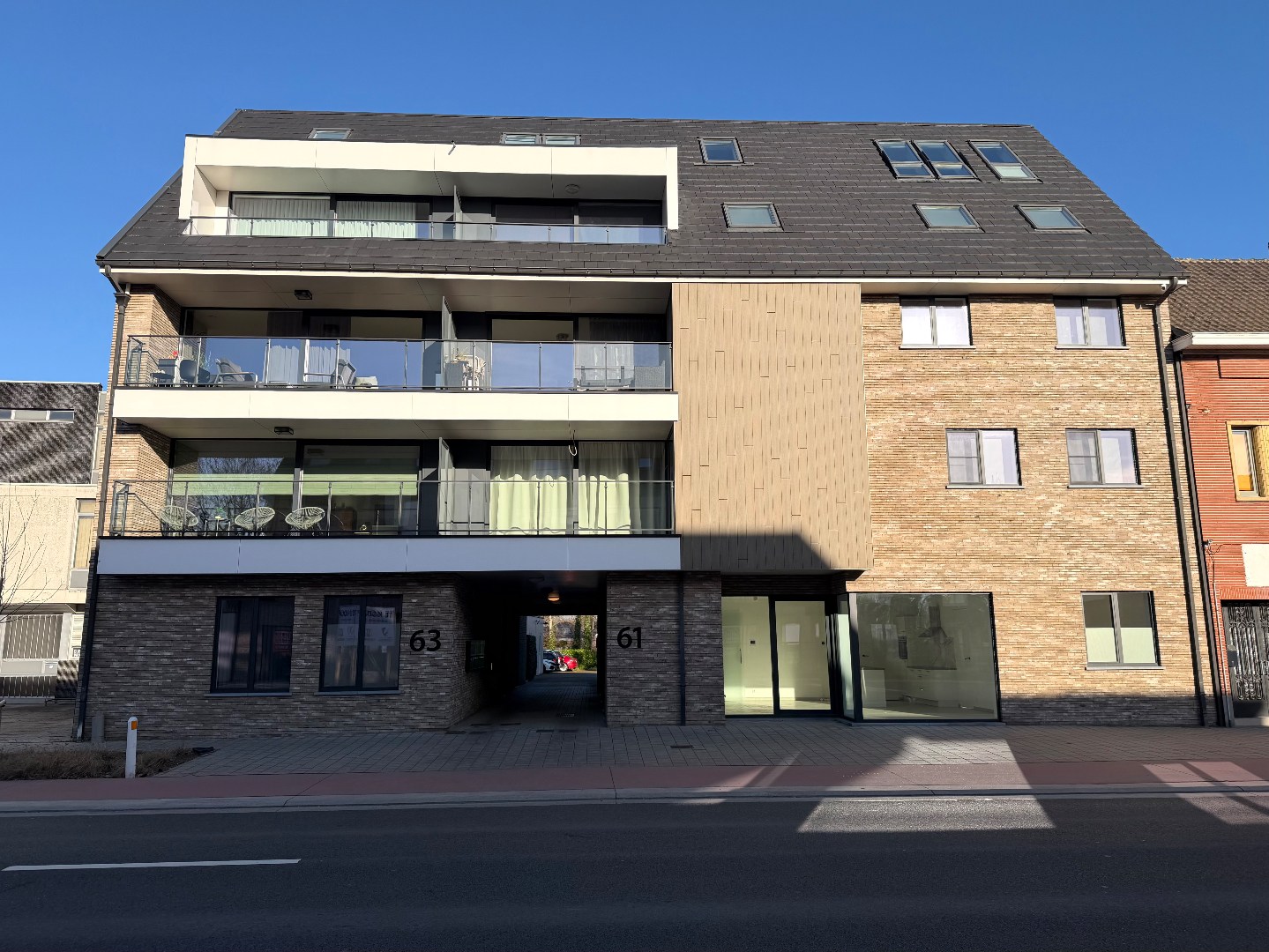Dit gelijkvloers appartement is gelegen in het dorp van Zeveneken. De recent gebouwde meergezinswoning (2020) is een modern gebouw met 14 appartementen, er is een private inrit met een automatische poort naar de parkeerplaatsen achteraan. 1 staanplaats is inbegrepen. Een pluspunt is dat dat appartement een eigen voordeur heeft, de andere appartementen nemen toegang via de gemeenschappelijke hal met trap en lift. Er is een bewoonbare opp. van ca. 80m2 met volgende indeling: een ruime inkomhal met grote berging, een apart toilet, een lichtrijke woonkamer met open keuken en een terrasje, een technische berging met plaats voor was- en droogmachine, een aparte slaapkamer met ensuite dressing en een badkamer met inloopdouche en lavabo. Het is een ideale woonplaats voor een alleenstaande of een koppel, de 2 bergingen zorgen voor minstens evenveel bergplaats dan een 2de slaapkamer zou doen. Achteraan bij de parkeerplaatsen is tevens een berging voor fietsen en vuilnis.