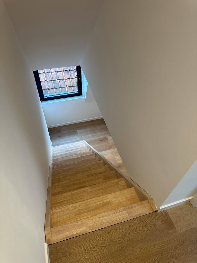 Deze halfopen bebouwing heeft een ideale bereikbaar en is toch rustig gelegen in een kleine landwegel, net buiten het dorp van Drongen. De woning werd in het afgelopen jaar volledig gerenoveerd: alle sanitaire leidingen werden vernieuwd, de volledige elektrische installatie, vloeren, ramen, muur- en dakisolatie, keuken en badkamer. De charmante woning is in deze staat klaar voor een eerste nieuwe bewoner. Op het gelijkvloers is er een mooie ruime woonkamer, palend aan de open, praktische keuken die voorzien is van een Cobi-oven, traditionele oven, vaatwas, koelkast en frigo. De badkamer bevindt zich ook op het gelijkvloers, net als een handige kleine opbergkelder. Op de eerste verdieping zijn er 2 mooie slaapkamers en een bureaukamer met trap naar de 3de grote slaapkamer onder het dak. Er is ook een apart toilet op de nachthal aanwezig. Onder het dak bevindt zich ook de technische berging met de brander en de omvormer van de zonnepanelen (vermogen van 3870WP!)