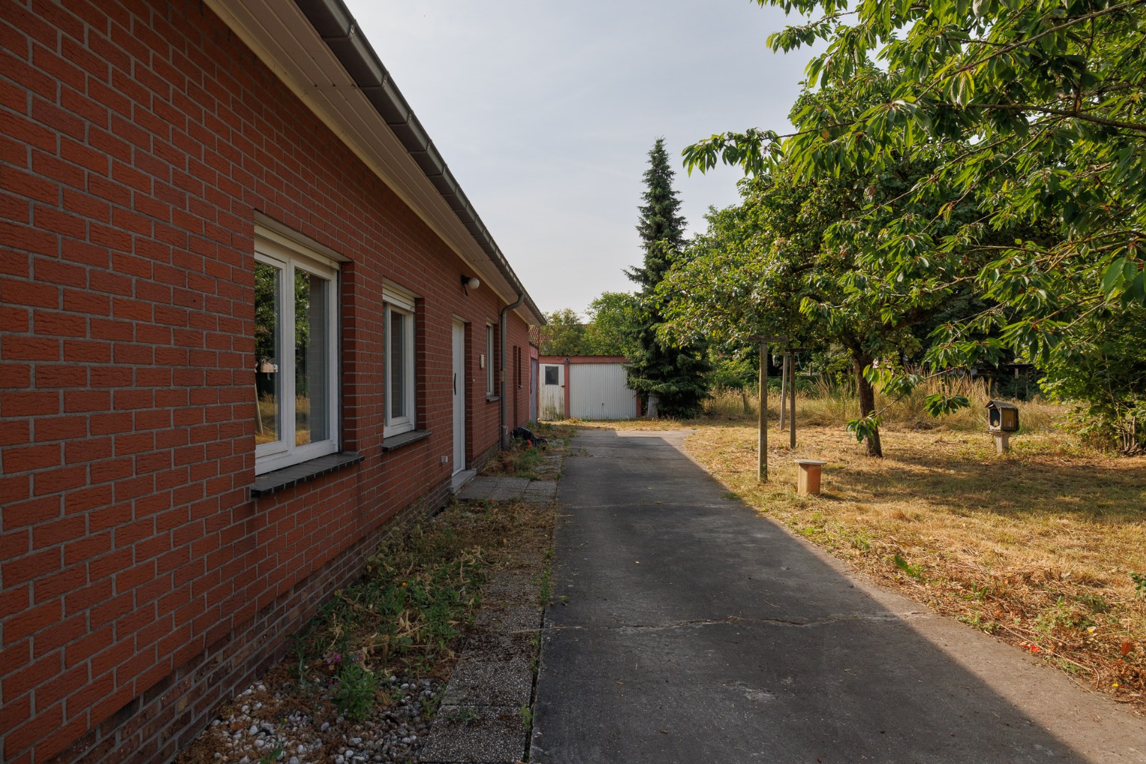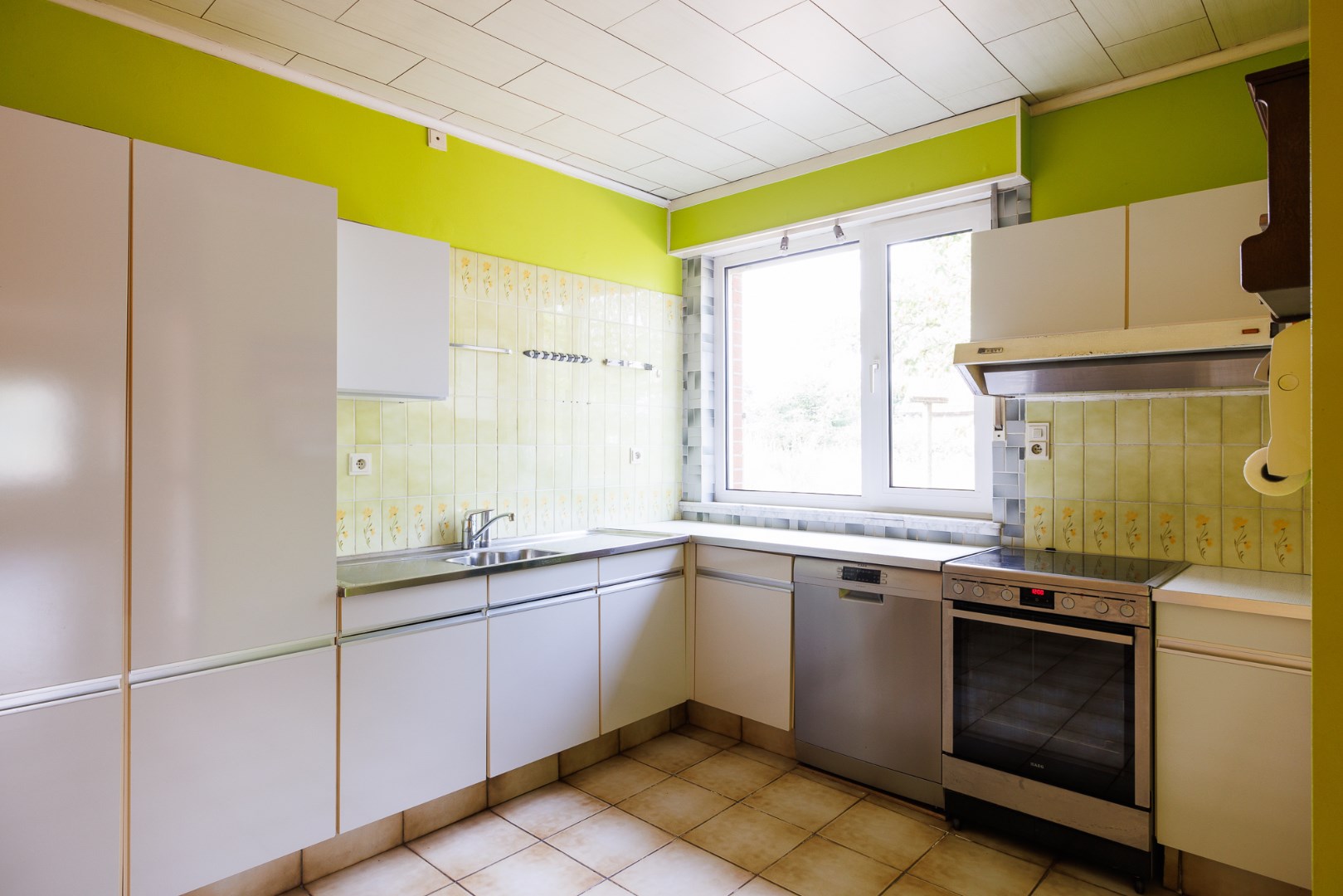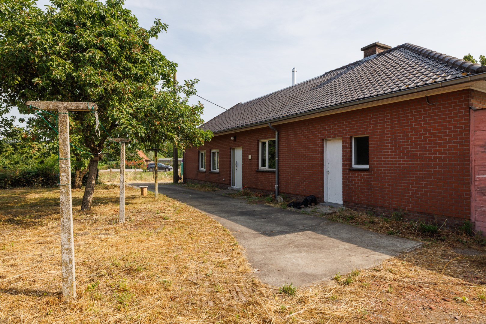 Deze woning geniet van een mooie private ligging, achter de huizen aan de straatkant. De woning werd gebouwd in 1970 en beschikt over een goede bouwstructuur. Er is een inkomhal, ruime woonkamer, keuken, nachthal met 3 slaapkamers, een badkamer en een grote berging aanwezig. De ramen zijn voorzien van rolluiken, er werd nog isolatie op de zolder aangebracht en de brander werd nog vernieuwd. Omwille van de goede bouwstructuur leent de woning zich perfect voor een renovatie binnen het bestaande volume, of een grote renovatie waarbij de achtergevel en zijgevel kunnen voorzien worden van mooie raampartijen met een mooi overzicht over de tuin. De bewoonbare oppervlakte vandaag is ca. 170m2. Een verbouwing kan steeds met behoud van een deel van de dragende muren en onder de vorm van 1 bouwlaag met een zadeldak. De zongerichte tuin is rondom voorzien van een volwassen groenscherm en enkele fruitbomen en geeft een geborgen gevoel. Ook de aanpalende woning wordt apart te koop aangeboden! Een extra troef is het rechtstreekse fietspad naar het provinciaal Domein van Puyenbroeck aan de overkant van de straat! Meer info: 0485/321.842