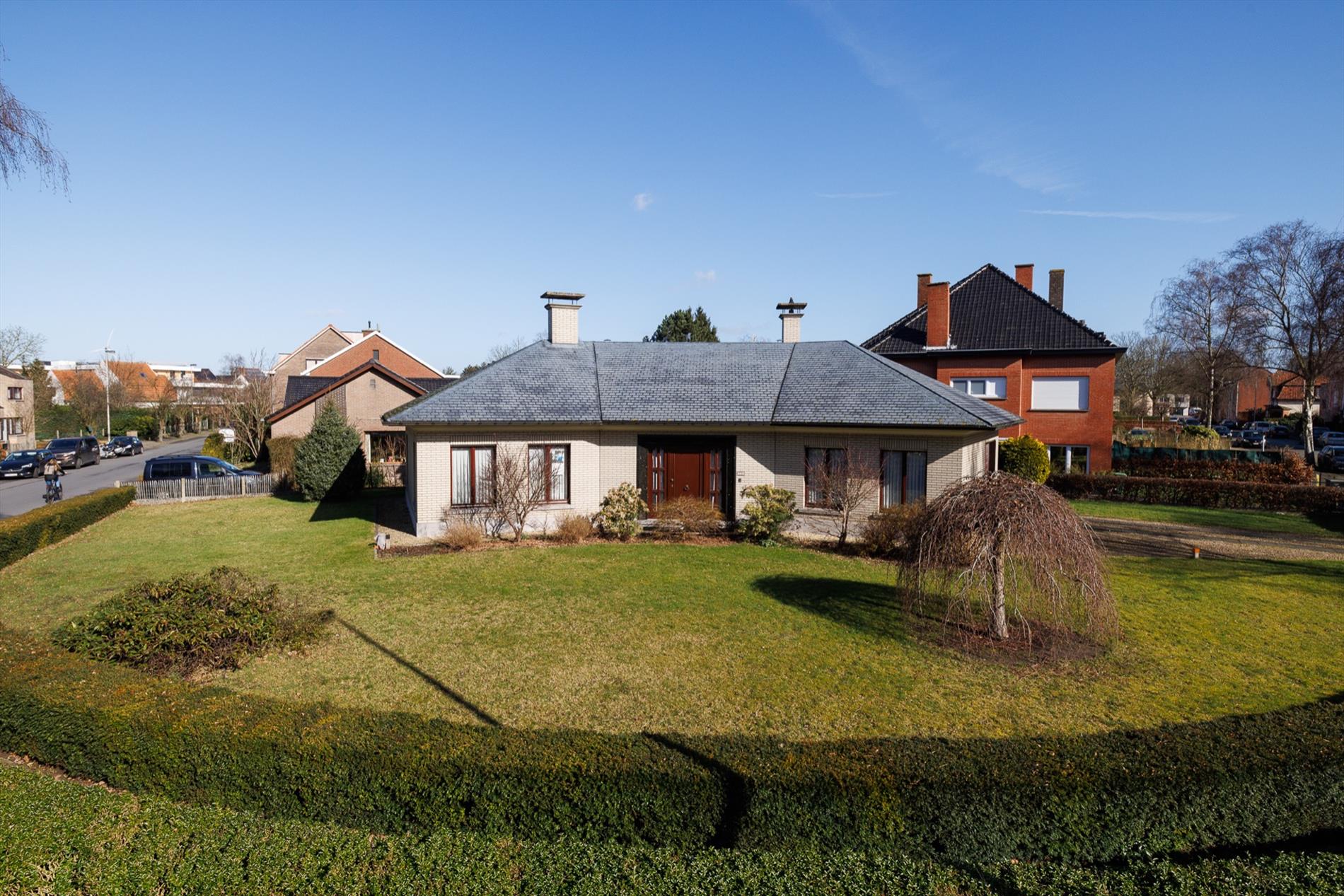 Deze mooie symmetrisch gebouwde woning bevindt zich in een rustige residentiële straat net buiten het centrum van Sint-Amandsberg. De woonstraat biedt echter een ideale bereikbaarheid naar centrum Gent, R4 of N70 en ook alle voorzieningen van openbaar vervoer tot allerhande winkels zijn nabij. De bouw van de woning werd gestart in 1975 en enkele jaren later afgewerkt. De bouwstructuur is een zeer betrouwbare basis, er is een perfecte staat van onderhoud en begin dit jaar werd nog de CV-installatie vernieuwd. Het houten schrijnwerk heeft dubbele beglazing én er zijn rolluiken. De indeling bestaat uit een centrale inkomhal met links de mooie ruime woonkamer , centraal de gang naar de ruime leefkeuken, de erg praktische kelder, de badkamer en 1 slaapkamer en aan de rechterkant toegang naar het apart toilet, de 2de slaapkamer en de grote garage met automatische poort. De zolder biedt nog een zee aan ruimte, het dak is een erg stevige constructie maar er dient nog isolatie te worden aangebracht op de vloer van de zolder of in het dak. De woning is per direct bewoonbaar met het voordeel dat opfrissingen naar eigen wens én in tijd kunnen gespreid worden. Het huis staat centraal op het mooi aangelegde perceel van ca. 900m2, de voortuin is volledig zuidgericht en fraai afgesloten met volwassen haag. Het open zicht is een extra toef! Ook achteraan de woning is nog een tuinzone die voldoende privacy, ochtend- en avondzon biedt. Meer info of een bezoek: 0485/321.842