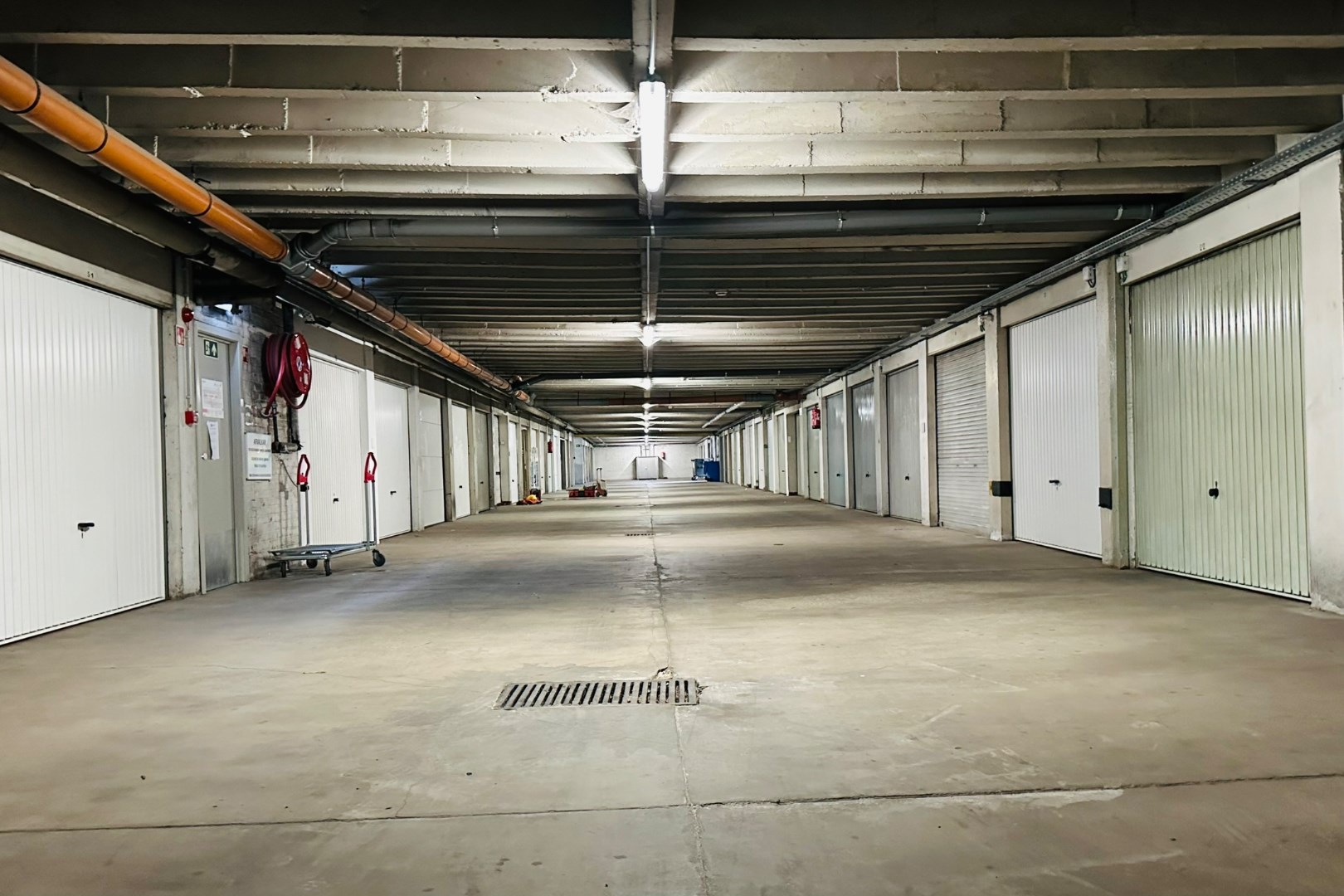 Centraal op het E3-plein bevindt zich de residentie Esplanade-Scaldis-Belvedere. De garages bevinden zich op verdieping -1 en hebben aparte in- en uitgangen die enkel met een sleutel toegankelijk zijn. De ruime gang tussen de garageboxen zorgt ervoor dat er gemakkelijk binnen en buiten kan gereden worden. De garage is afgesloten met een poort en is voorzien van een eigen stopcontact, schakelaar en lichtpunt. De afmeting bedraagt 5,21m x 2,65m. Er is ook voldoende hoogte beschikbaar, mocht de box bijvoorbeeld voor een loutere opslag dienen. De metalen steunpilaren zijn tijdelijk gezet wegens een renovatie aan de terrassen van het appartementsgebouw die momenteel wordt uitgevoerd. Meer info en een bezoek: 0485/321.842