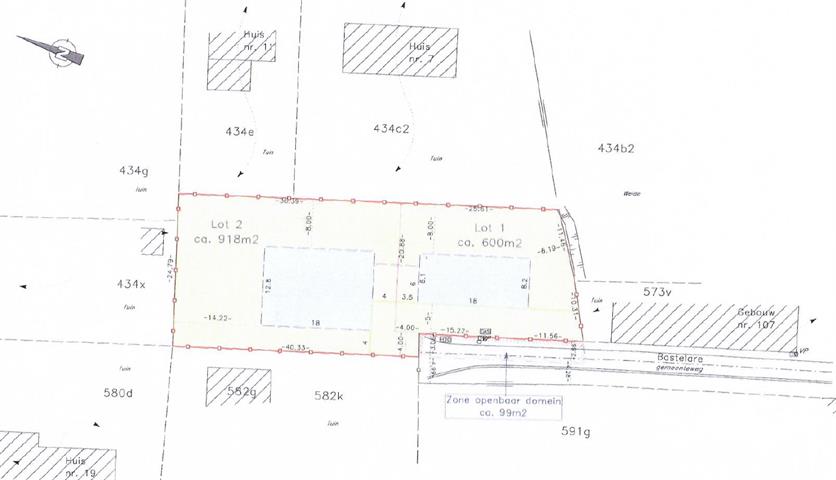 De bouwgrond werd recent bouwklaar gemaakt en maakt deel uit van een kleinschalige verkaveling van 2 loten. Lot 1 heeft een oppervlakte van ca. 600m², Lot 2 paalt heeft een oppervlakte van ca. 918m². De 2 loten liggen op het einde van een klein doodlopend straatje. De ééngezinswoningen kunnen zowel een bungalow worden waarbij de volledig getekende oppervlakte kan bebouwd worden. Ook een woning met 2 bouwlagen wordt toegestaan, waarbij op het gelijkvloers een diepte van 15m en op de verdieping een diepte van 12m dient gehanteerd te worden. (zowel een zadeldak als een plat dak zijn toegelaten). Een aparte garage voor beide loten, tegen elkaar aangebouwd, is eveneens mogelijk! Een apart gebouw zoals een tuinhuis, berging, overdekt terras,... mag een oppervlakte hebben van 25m². Ook een siervijver of een zwembad kan aangelegd worden met een max. oppervlakte van max. 30m². Ook een nevenfunctie voor een vrij beroep kan tot 25% van de vloeroppervlakte. Voor meer informatie: 0485/321.842