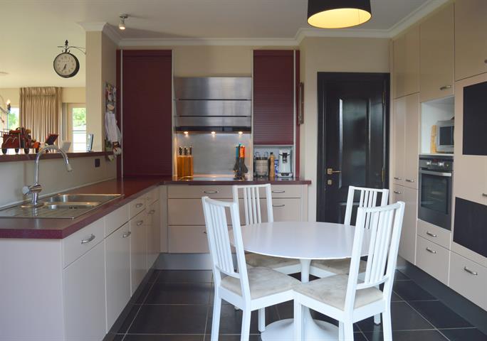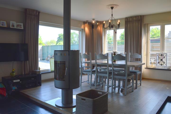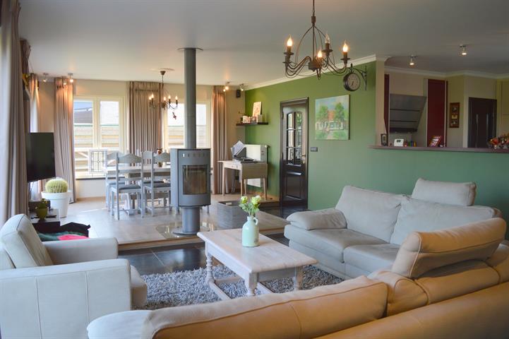 Net buiten het dorp van Zaffelare, bevindt zich deze instapklare woning op een mooi perceel van 1041m². De woning van 2006 voorziet in alle comfort: CV op aardgas, onderhoudsvriendelijke ramen mét rolluiken, 4 slaapkamers, afgewerkte zolder, inpandige én aparte garage met automatische poorten,... Ook de aangelegde tuin met zonneterrassen en volwassen hagen is een extra troef! Het weidse uitzicht aan de achterkant is een absolute meerwaarde bij de tuin! Op het gelijkvloers bevindt zich de inkomhal met toilet en monumentale eiken trap, de woonkamer met grote raampartijen, zit- en eethoek en een centrale houtkachel, een half-open keuken voorzien van alle apparatuur, een aparte berging en een erg praktische wasplaats bij de achterinkom waar tevens een douche met toilet voorzien is. De garage in de woning is voldoende ruim voor een wagen én andere voorzieningen (diepvriezer, fietsen, kasten, ...) rond de open nachthal bevinden zich 4 slaapkamers, de grote badkamer met douche, ligbad en dubbele lavabo en een aparte bureaukamer met vaste trap naar de afgewerkte zolder. Deze ruimte wordt momenteel gebruikt als speelkamer maar kan perfect extra slaapruimte of hobbykamer worden. De aparte garage met stockageverdieping werd pas enkele jaren geleden gebouwd in dezelfde bouwstijl als de woning. Deze afgewerkte gezinswoning is steeds met zorg onderhouden en past perfect voor mensen die op zoek zijn naar een centrale, doch landelijk gelegen eigendom! Meer info: 0485/321.842