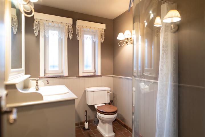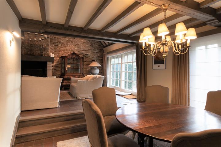 Deze landelijke villa bevindt zicht net buiten het centrum van Loppem, in een rustige groene buurt. Ook de vlotte bereikbaarheid naar de E40 en de stad Brugge zijn een absoluut pluspunt. De woning werd gebouwd in 1974 en heeft een klassevolle tijdloze uitstraling. Sinds 2008 werd het interieur met zorg vernieuwd: een nieuwe keuken met duurzame materialen, mooi ingerichte badkamers en een hedendaagse aankleding. De inkomhal geeft toegang naar de, tot in de nok opengewerkte, living rond de open haard met aansluitende eetplaats. Ook de leefkeuken heeft een alledaagse eethoek. Verder is er een badkamer met douche, lavabo en toilet en een aparte wasplaats, naast de dubbele garage en de technische berging. De trap in de living komt uit op een overloop boven die ingericht is als een bureel. De grote slaapkamer heeft een ensuite badkamer met lavabo, douche en toilet en ook de andere 3 slaapkamers hebben hun eigen sanitair met lavabo. Op de nachthal is nog een apart toilet. De tuin is sierlijk sereen aangelegd met verschillende bomen, paden, een waterpartij en een natuurlijke gazon. Een tweede deel van de tuin werd recreatief aangelegd met een basketpleintje, schommel en tuinhuisje, een absoluut hoogtepunt voor gezinnen met kinderen of sportievelingen! Deze instapklare villa biedt troeven als privacy, gezelligheid, ruimtelijkheid, groene omgeving, bereikbaarheid en vooral het gevoel van een warme thuis! Meer info: 0485/321.842
