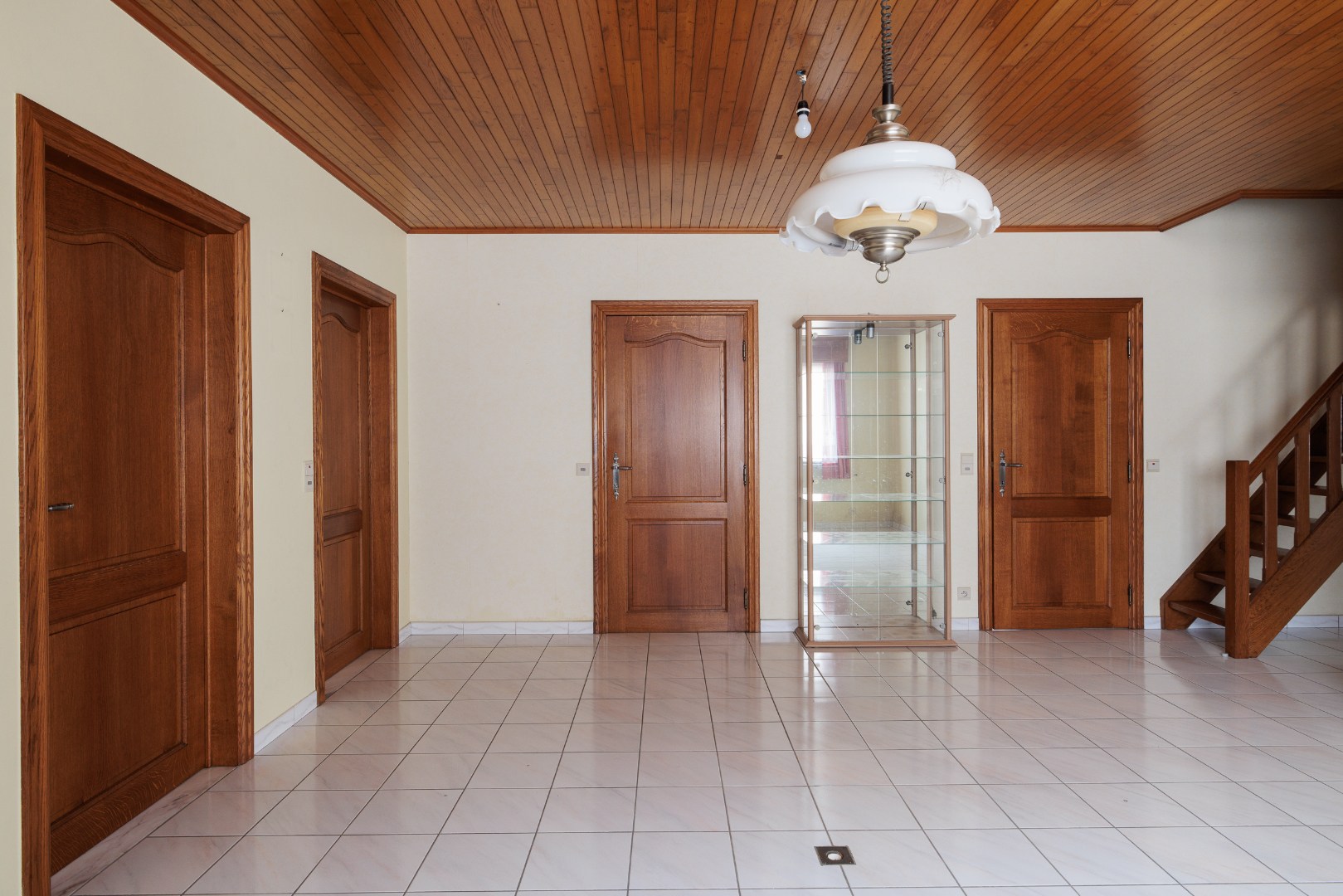Deze woning bevindt zich net buiten het dorp van Beervelde, in een residentiële straat met ruime percelen en alleenstaande woningen. Het huis werd gebouwd in 1991, is perfect onderhouden en beschikt over een ruime indeling. De bouwstructuur is ook erg degelijk en de zolderverdieping is veel ruimer dan in een standaard bungalow. Dit maakt het mogelijk om bij een renovatie ook de verdieping in te richten naar o.m. slaapkamers e.a. De bewoonbare oppervlakte op het gelijkvloers is nu reeds 191m2. Op de verdieping kan nog eens zo'n 130m2 benut worden. Op het gelijkvloers is er een ruime inkomhal, een woonkamer, grote leefkeuken, een badkamer, wasplaats, een centrale zit- of hobby/bureelruimte met een toegangsdeur naar de oprit, 2 grote slaapkamers (waarvan 1 met apart toilet), een berging en een inpandige garage. Er is een vaste trap naar de open zolderverdieping. Het interieur van de woning heeft nood aan een opfrissing - renovatie: er wordt vandaag verwarmd met een gaskachel en accumulatoren, het dak is quasi niet geïsoleerd en de keuze van materialen kan gemoderniseerd worden. De troef van deze woning is met zekerheid de ruime indeling, die tal van mogelijkheden biedt aan grote gezinnen, mensen die wonen en werken willen combineren, eventueel zelfs kangoeroewonen! De grote tuin is een 2de mooie eigenschap: er is een leuke voortuin, maar de ruimte achteraan is een oase van groen en rust. Deze woning biedt een betrouwbare basis om er opnieuw een warme thuis van te maken!
