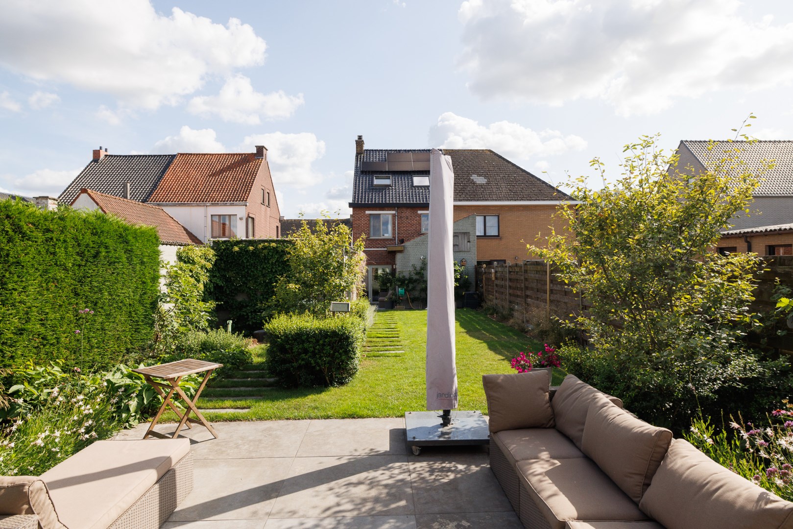 Net buiten het centrum van Gavere en met een vlotte verbinding naar de invalswegen, bevindt zich deze charmante dorpswoning. Door de jaren heen werd het huis aangepast naar de gewenste normen waardoor er vandaag een energielabel B kan voorgelegd worden. (recente dakisolatie, spouwmuurisolatie, hoogrendementsbeglazing, nieuwe brander en dit jaar nog werd een zonnepanelen installatie voorzien van 10 panelen met een totale jaaropbrengst van 3000 kWh én de mogelijkheid om een thuisbatterij eraan te koppelen. Ook het interieur van de woning geniet van een hedendaagse en toch authentieke sfeer. Er is een ruime inkomhal met trap, doorgang naar de leefruimte met een lichtrijke zithoek rond de inbouwcassette, een centrale eetplaats en een praktische keuken die toegang geeft naar de tuin. Er is een ruime badkamer, voorzien van ligbad, dubbele lavabo, douche en toilet en een kelder die dienst doet als extra opslagruimte. Boven zijn er 2 erg gezellige slaapkamers, elk met 2 ramen, en een dressingroom. De vaste trap naar de zolderverdieping komt uit op een recent ingerichte masterbedroom met ramen aan 3 zijdes en ingebouwde kasten. De tuin voorziet in een houten toegangspoort die naar een garage leidt, ideaal voor fietsen en bergruimte voor allerhande materiaal. Het bijgebouw achteraan in de tuin is een absolute troef: hier is een keukenruimte, apart toilet, zithoek en eetplaats voorzien, eveneens een inbouwcasette. Er is ook nog een werkplaats achteraan. Meer info: 0485/321.842