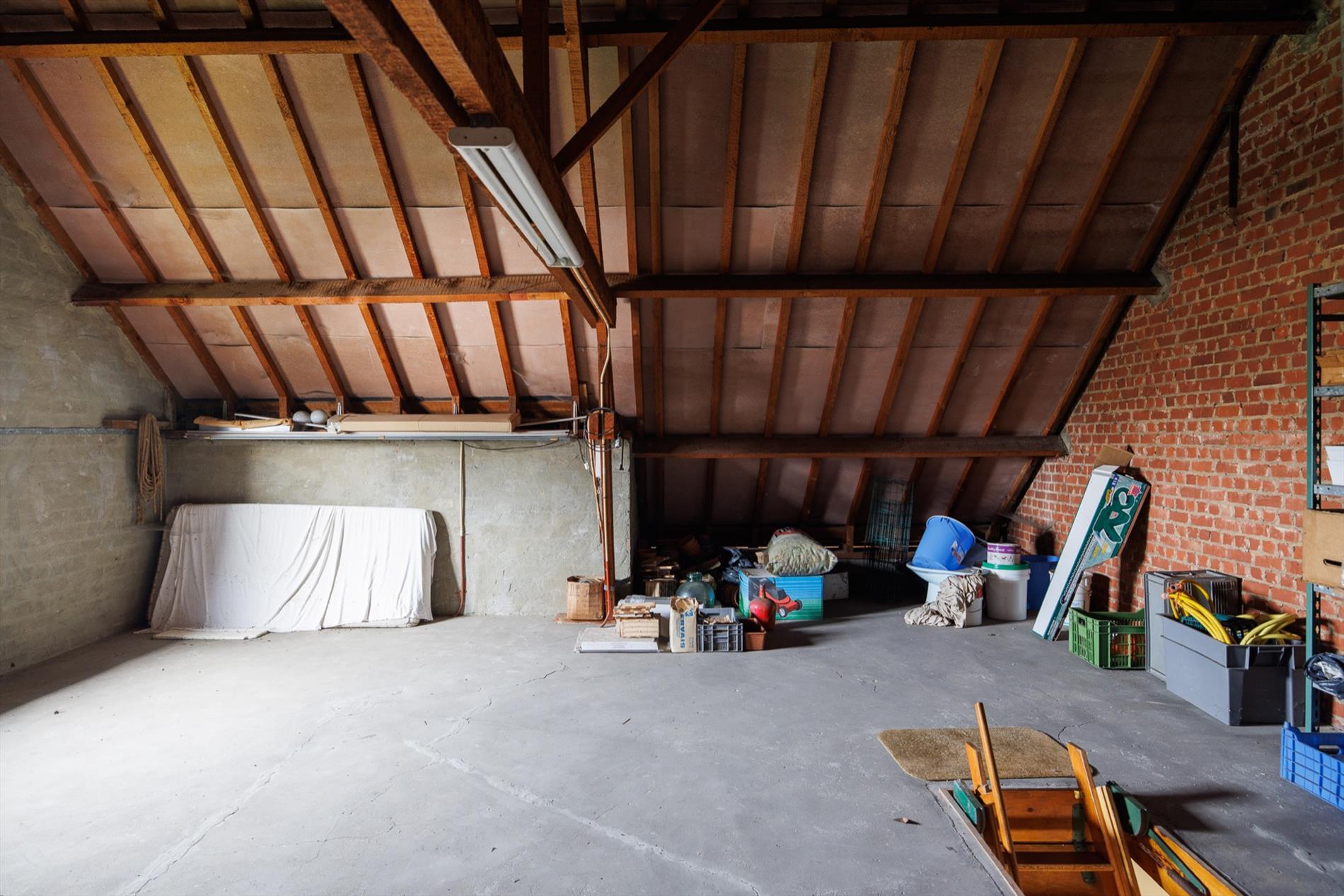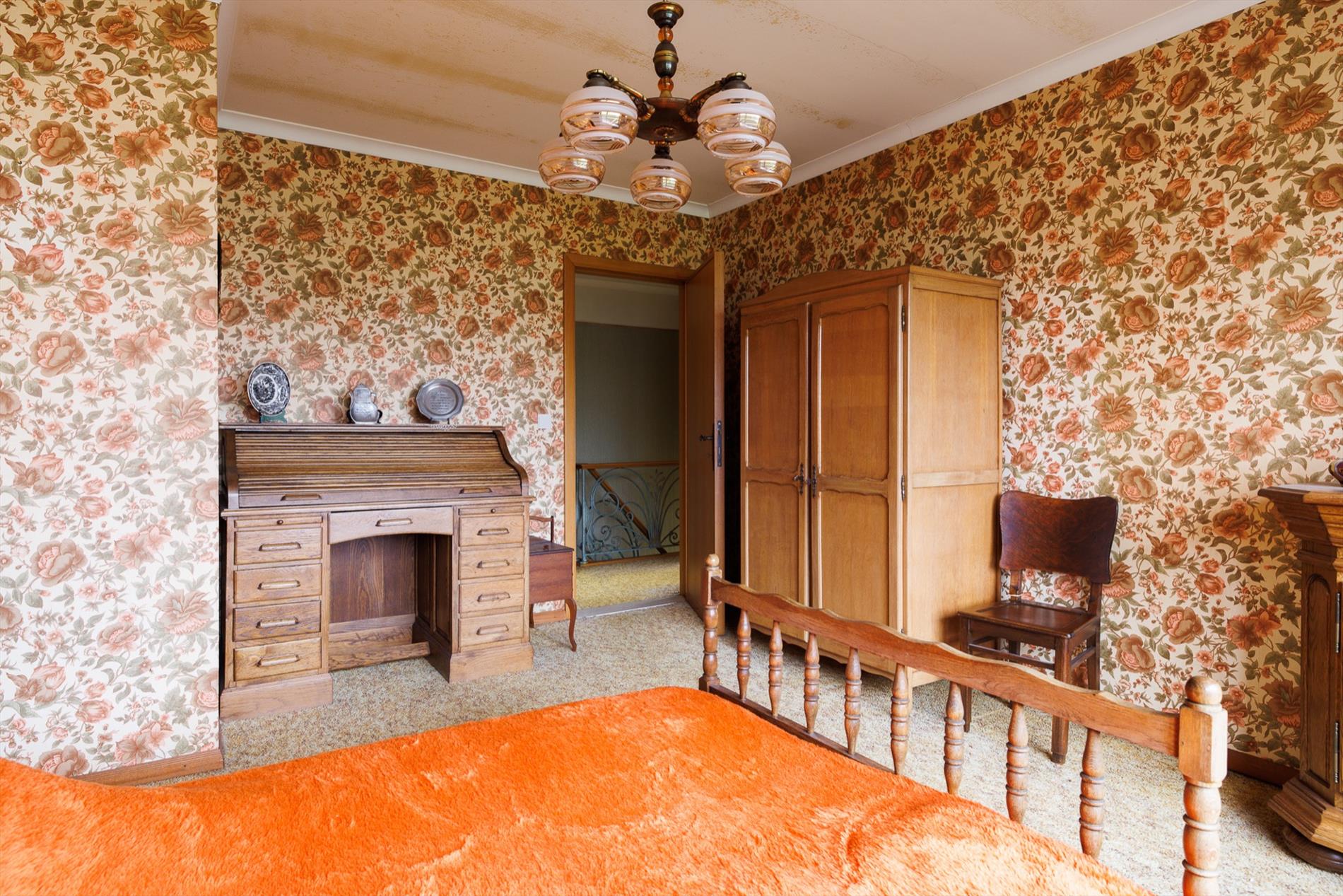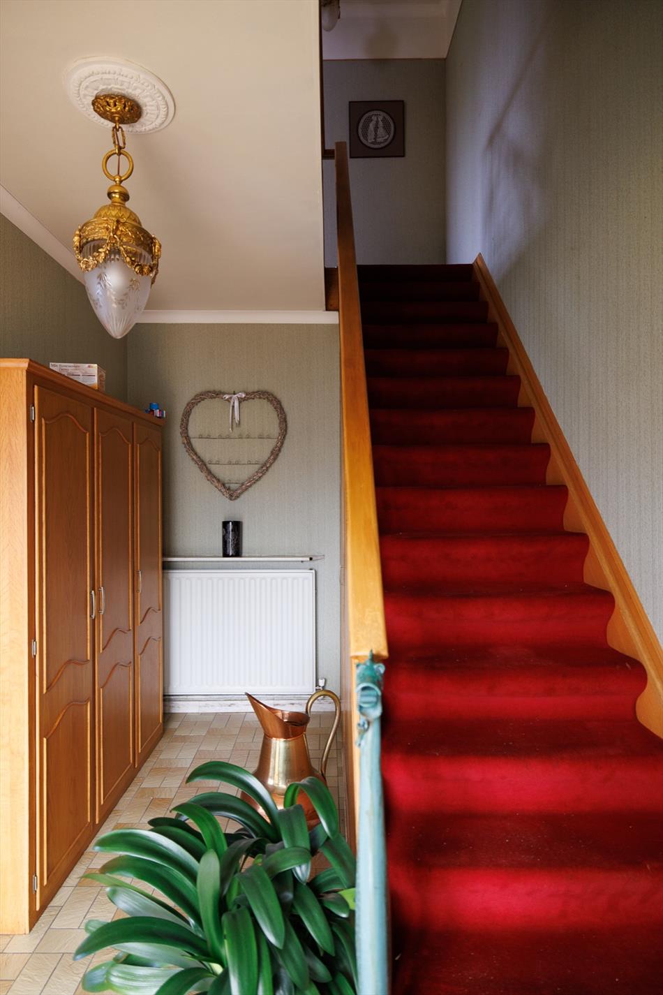 Deze woning bevindt zich in een rustige doodlopende straat in de residentiële buurt tussen de Gentbrugge Meersen en de Brusselsesteenweg. De nabijheid van invalswegen, openbaar vervoer, alle voorzieningen én openbaar groen zijn zeker een pluspunt! De woning bevindt zich in een oudere verkaveling van 1963, met een brede straat en mooie groenschermen. De woning zelf werd gebouwd in 1973 en heeft een heel goede bouwstructuur. Het interieur heeft tal van authentieke elementen uit de jaren '70 maar tegelijk ook een hedendaagse indeling. Er is een ruime inkomhal met een sierlijke koperen trapleuning als 'eyecatcher', een grote woonkamer met veel lichtinval, een houtkachel in de zithoek en een eetplaats, een aparte keuken met toegang naar een badkamer en naar de achter inkom, waar zich eveneens een apart toilet en de technische berging bevinden. Een veranda werd later aangebouwd. Boven is er een ruimtelijke nachthal met toegang naar 3 grote slaapkamers en een kleinere kamer die perfect kan dienen als badkamerruimte óf plaats voor een vaste trap naar de grote open zolder. Het dakgebinte is in perfecte staat en de ruimte kan zeker dienen voor 2 extra kamers. De tuin naast de woning heeft een westelijke oriëntatie, de tuin achteraan is oostelijk gericht. Er is tevens een grote aparte garage met sectionaalpoort. Deze ruime woning biedt heel wat potentieel op een uiterst goede locatie! meer info: 0485/321.842