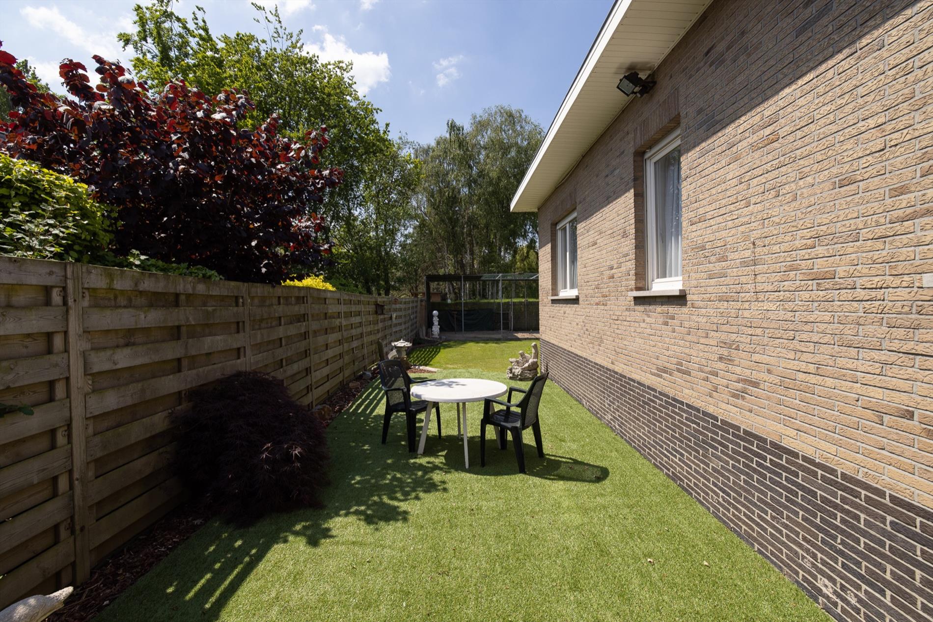 Deze woning is gebouwd begin de jaren '70 en heeft een goede bouwstructuur. De dorpskern en de op-en afrit van de E17 Haasdonk bevinden zich op een steenworp. De tuin en het huis hebben een zeer goede staat van onderhoud en werden tussentijds steeds aangepast waar nodig, zo werden de keuken, de badkamer en de vloeren al eens vernieuwd, werd er deels nieuwe beglazing voorzien in de leefruimte en een 4-tal jaar terug werd een nieuwe inbouwcasette op hout geplaatst. Het woongedeelte bevindt zich volledig op hetzelfde niveau en de woning is volledig onderkelderd. Er is een ruime inkomhal met apart toilet, een leefruimte met een mooie lichtinval en uitzicht op de velden aan de voorzijde, een grote keuken met natuurstenen werkblad en voldoende kastruimte én een praktische bijkeuken die tevens de wasplaats is met toegang naar de tuin. Rond de nachthal bevinden zich 3 mooie grote slaapkamers, een bureauruimte en een badkamer met ligbad, douche, lavabo en toilet. De zolderruimte wordt niet gebruikt, maar de volledige kelderruimte doet dienst als garage, werkplaats en technische ruimte. Ook hier is er een toilet en sanitaire voorzieningen aanwezig. De tuin geeft rondom voldoende privacy en beschikt vandaag over 2 tuinhuisjes. Er is reeds gescheiden riolering aanwezig en een aardgas aansluiting kan voorzien worden indien gewenst. Mooie instapklare woning die naar eigen wens nog kan opgefrist worden! Meer info: 0485/321.842