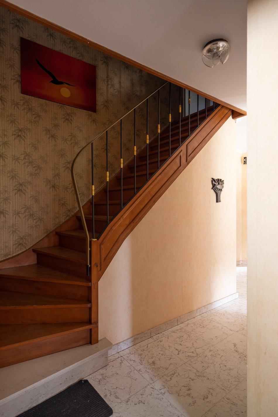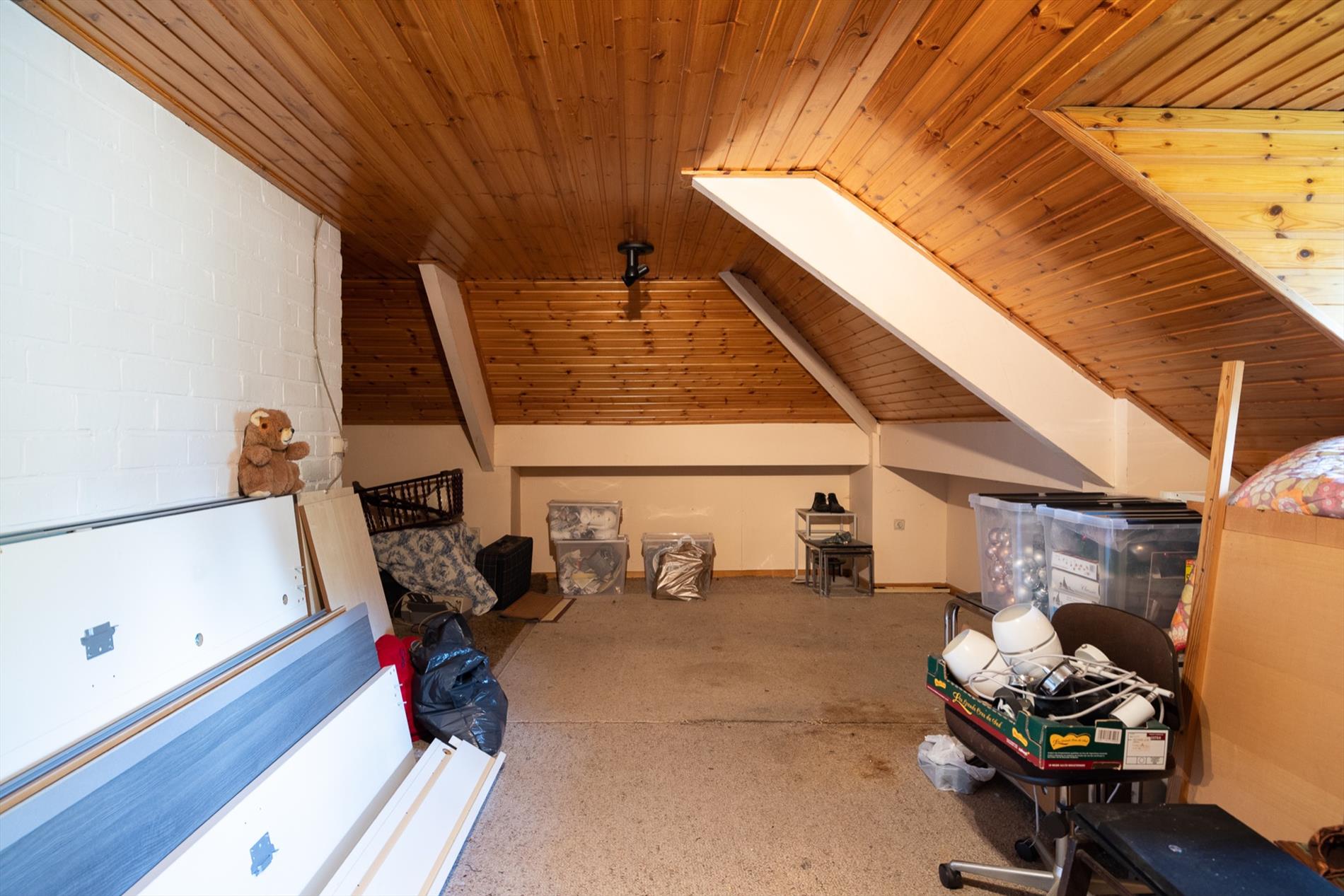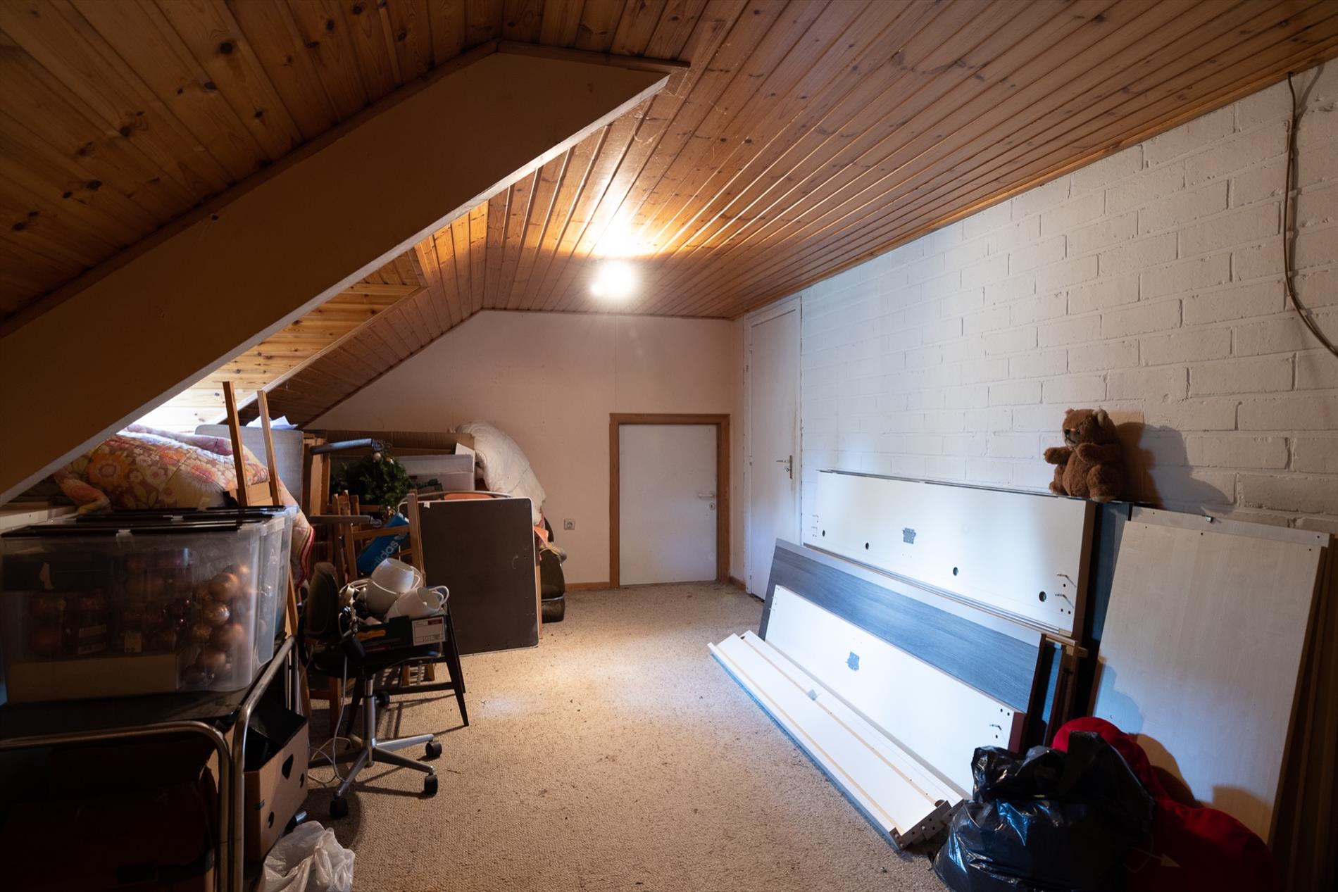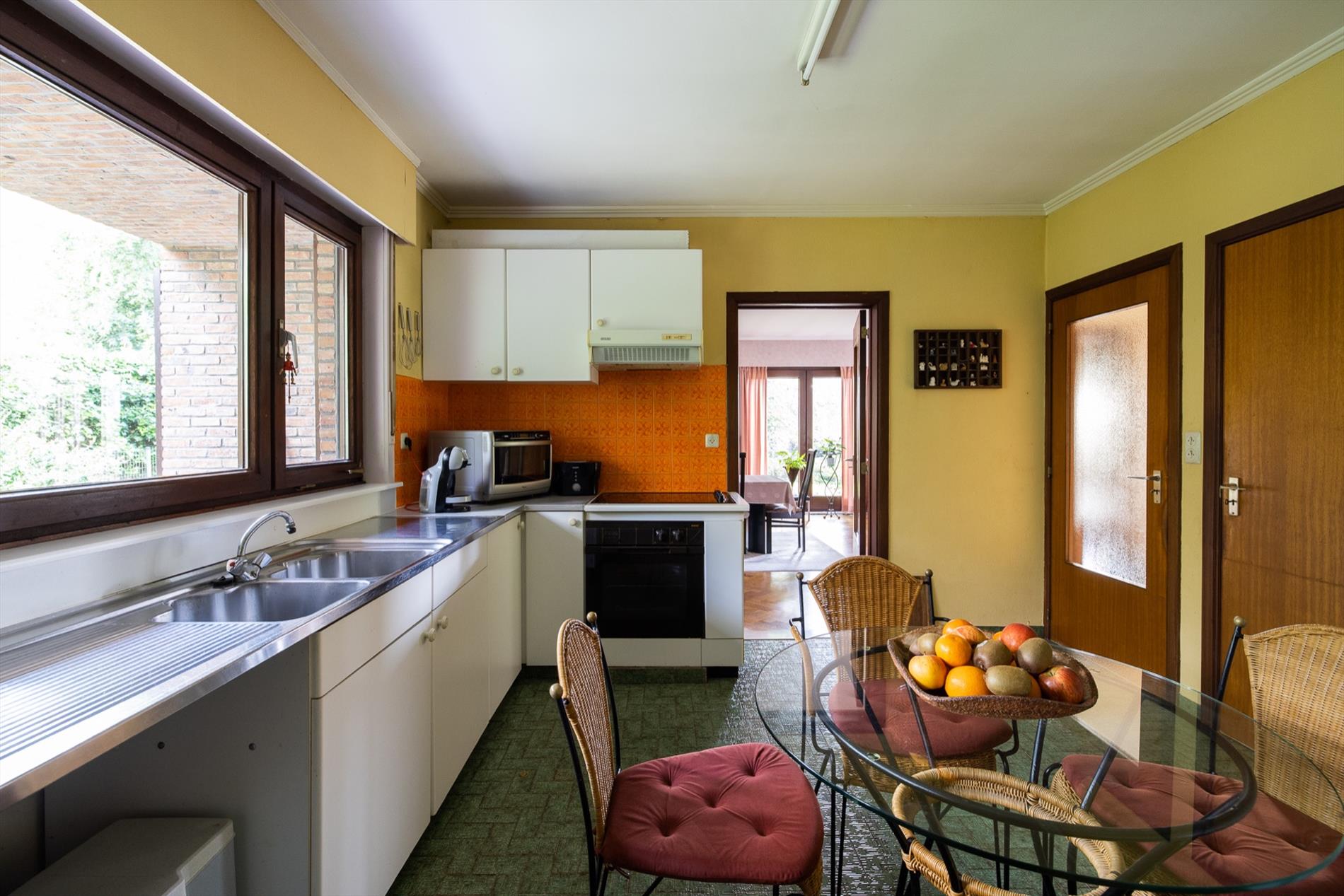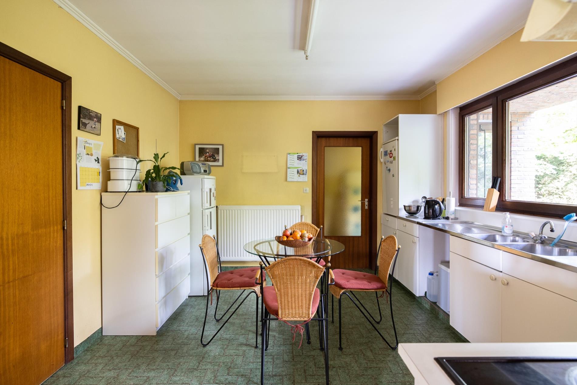 Deze alleenstaande woning werd gebouwd in 1971 en heeft een goede bouwstructuur en een leuke indeling. De woning staat een stuk dieper op het perceel waardoor met vooraan een grote groene voortuin met volwassen bomen en struiken. Op vandaag wordt enkel de gelijkvloerse verdieping bewoond, maar een vaste trap en voldoende zolderruimte laten zeker een uitbreiding van het aantal slaapkamers toe! De ruime inkomhal geeft toegang naar de woonkamer met een zithoek rond de haard en een eethoek. Aansluitend bevindt zich de keuken, voorzien van een basisinrichting en ruimte voor een alledaagse eettafel. Er is een kleine ondiepe kelder die als koele berging dienst doet. Een aparte bureaukamer aan de achterkant van de woning kan ook als derde slaapkamer gebruikt worden. De nachthal is voorzien van een apart gastentoilet, een vestiaire, een typische jaren '70 badkamer en 2 mooie slaapkamers met zicht op de achtertuin. De vaste trap gaat naar een grote zolderruimte die als berging kan gebruikt worden of verder kan ingericht worden naar slaapkamers. Het volledige dak én de spouwmuren werden in 2014 geisoleerd. Er is een aparte garage waarin ook de CV ketel, de wasmachine en droogkast staan. De ruime tuin rondom is voorzien van een breed groenscherm, mits een aantal aanpassingen kan de totale oppervlakte nóg meer tot zijn haar recht komen! De woning heeft nood aan een aantal veranderingen, maar biedt mogelijkheden die bij weinig nieuwe woningen terug te vinden zijn! Meer info: 0485/321.842