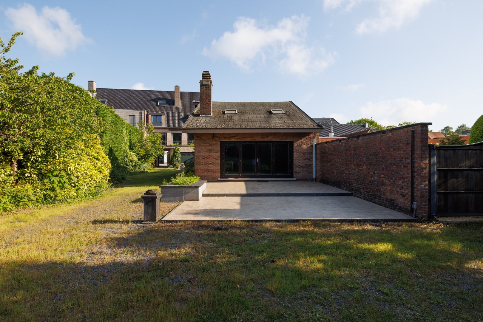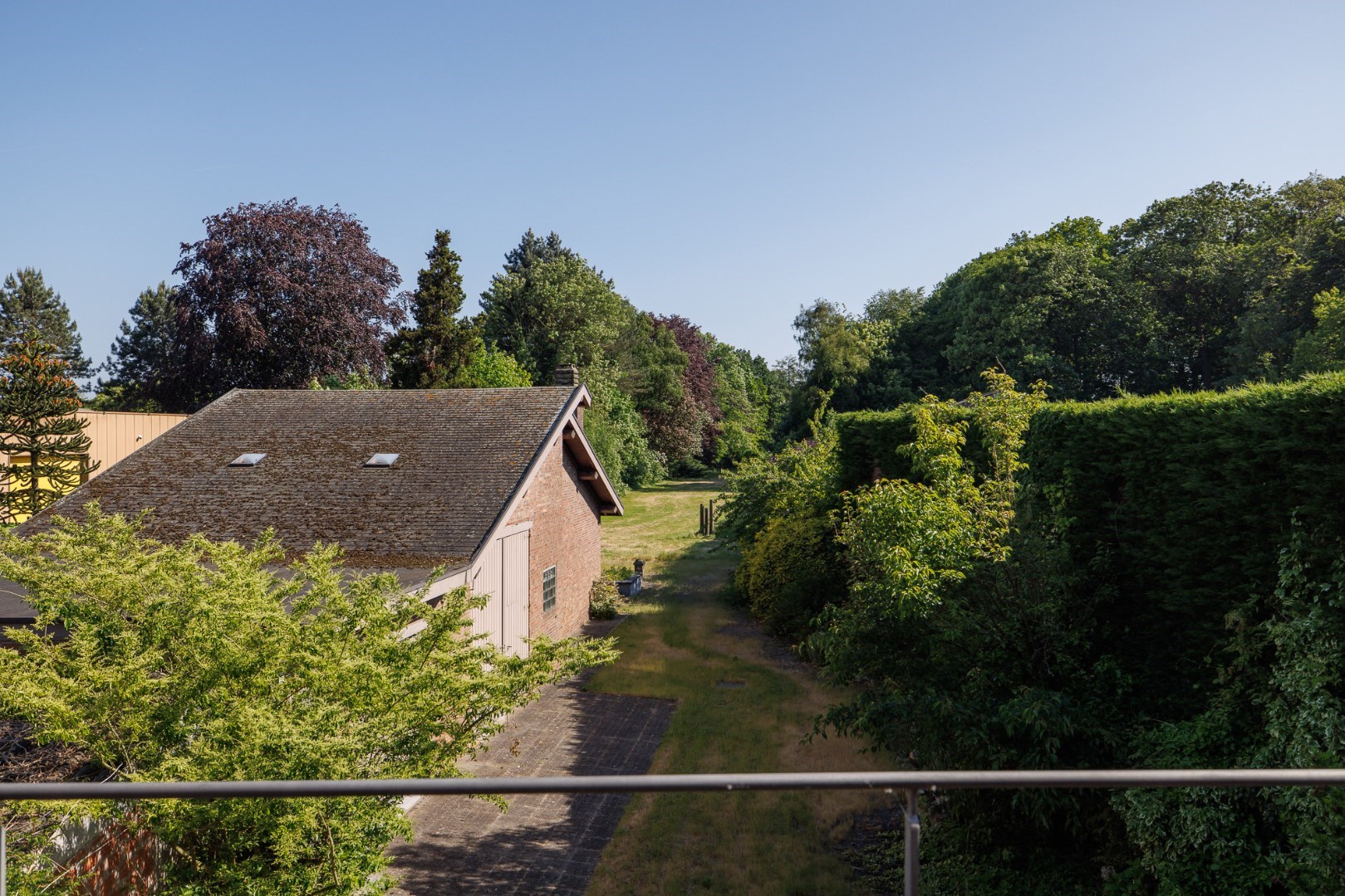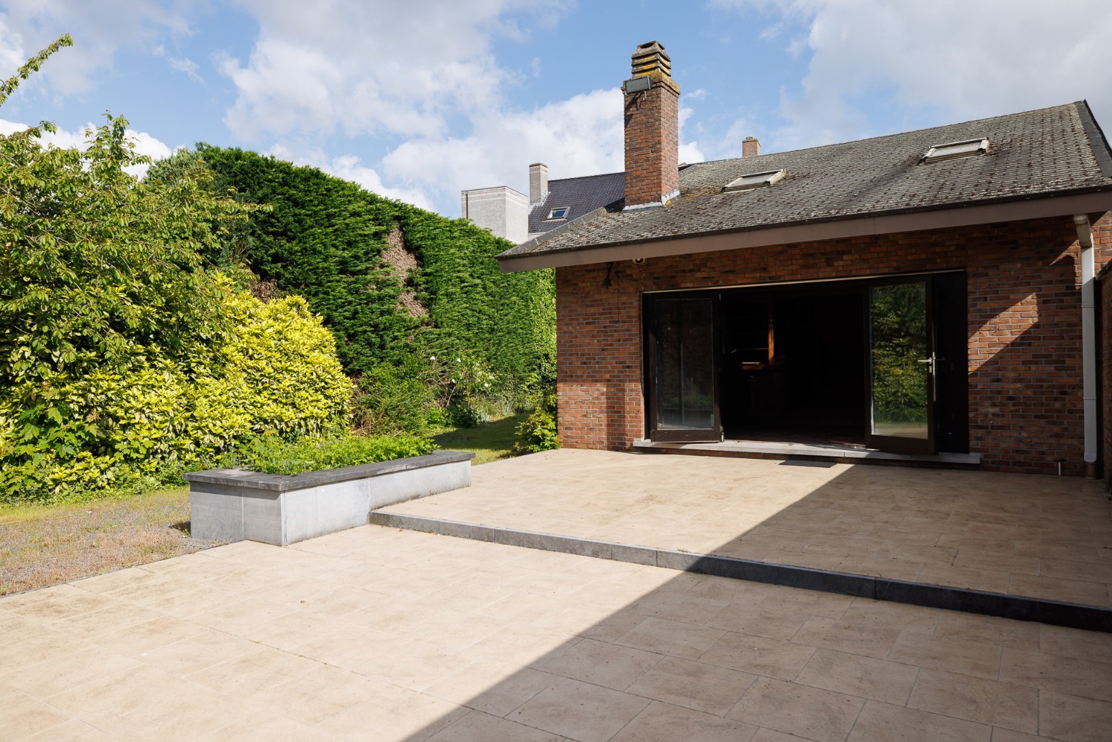 Dit domein is centraal gelegen maar volledig verborgen, in het dorp van Zeveneken. De moderne gevel toont het bouwjaar van begin jaren '90 maar laats niets vermoeden van de groene long die zich achteraan bevindt. De woning werd ontworpen en uiterst degelijk gebouwd met oog voor detail en vooral voor comfort van de bewoners. Zo bevinden de praktische ruimtes zich op het gelijkvloers: de doorgang met een hoogte van 3m naar het bijgebouw en de tuin, de ruime inkomhal met lift en traphal, een apart toilet, toegang naar de kelder en een grote garage. Boven is er een mooie open leefruimte met zicht op de tuin, een halfopen keuken met uitzicht op het dorp en een vestiaire met toilet. De 2de verdieping biedt plaats aan 3 héle ruime slaapkamers met een mooie mozaïekparket en 2 aparte badkamers. Er is tevens een grote zolder die perfect kan opgedeeld worden in 2 extra kamers. Het bijgebouw is volledig vergund én ligt ook volledig in woongebied. Er is ca. 110m2 open opslagruimte met 2 poorten en een heel gezellig 'vakantiehuisje' met het mooiste uitzicht op het domein. De tuin bestaat uit een grasplein met een volwassen groenscherm van mooie parkbomen en struiken rondom, er is ook een stukje loofbos aanwezig. Er is een 2de toegang voor de tuin voorzien. Meer info: 0485/321.842