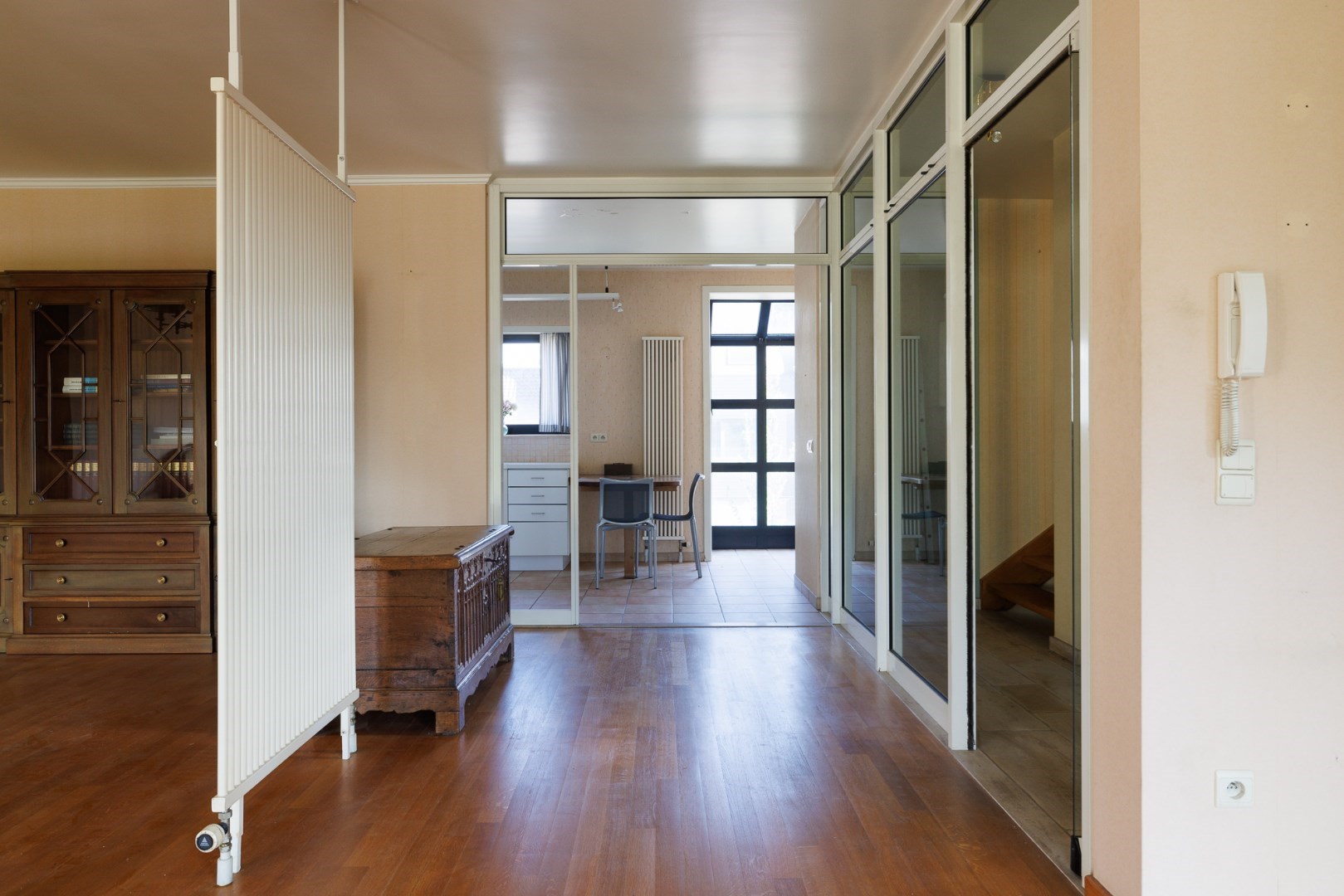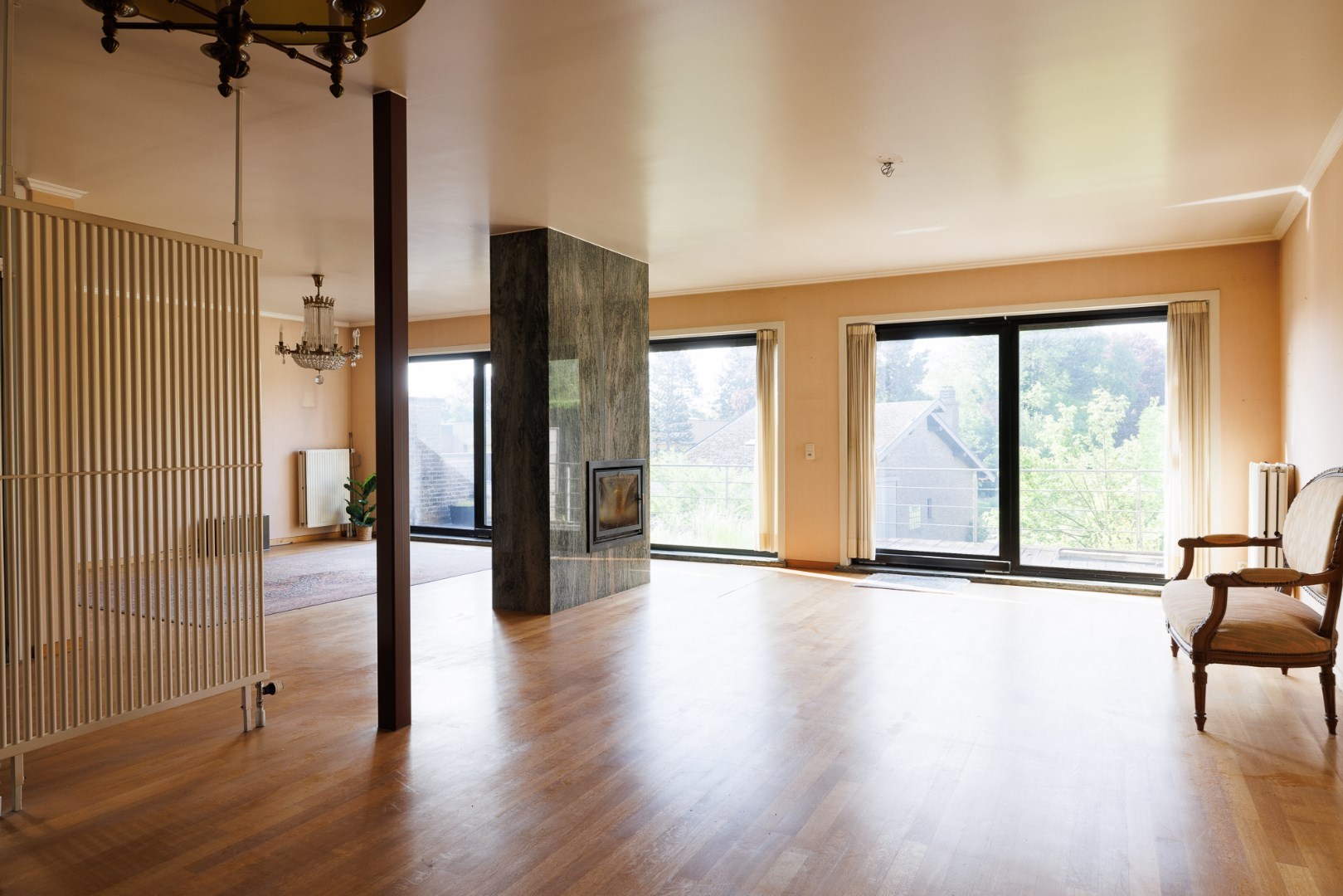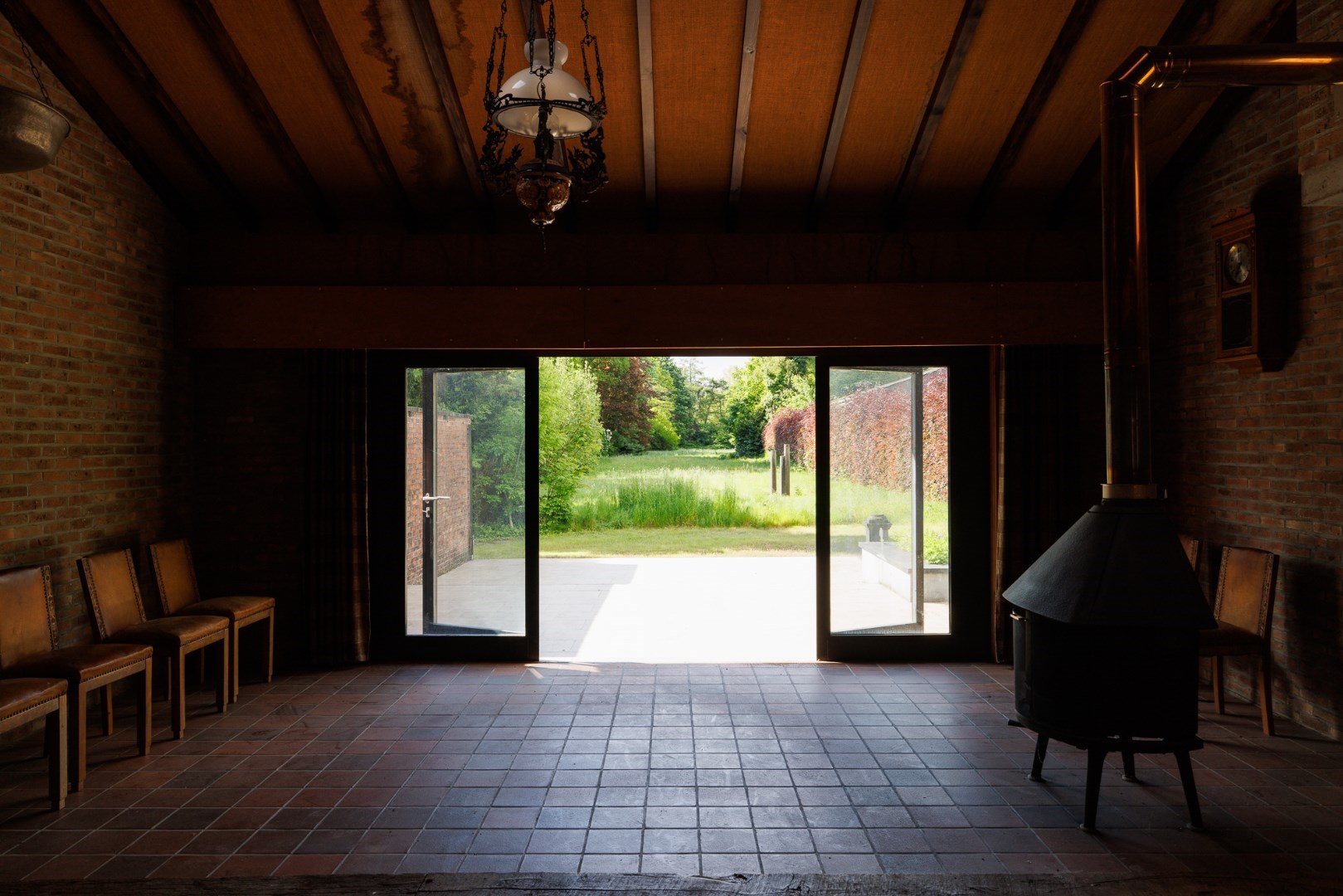 Dit domein is centraal gelegen maar volledig verborgen, in het dorp van Zeveneken. De moderne gevel toont het bouwjaar van begin jaren '90 maar laats niets vermoeden van de groene long die zich achteraan bevindt. De woning werd ontworpen en uiterst degelijk gebouwd met oog voor detail en vooral voor comfort van de bewoners. Zo bevinden de praktische ruimtes zich op het gelijkvloers: de doorgang met een hoogte van 3m naar het bijgebouw en de tuin, de ruime inkomhal met lift en traphal, een apart toilet, toegang naar de kelder en een grote garage. Boven is er een mooie open leefruimte met zicht op de tuin, een halfopen keuken met uitzicht op het dorp en een vestiaire met toilet. De 2de verdieping biedt plaats aan 3 héle ruime slaapkamers met een mooie mozaïekparket en 2 aparte badkamers. Er is tevens een grote zolder die perfect kan opgedeeld worden in 2 extra kamers. Het bijgebouw is volledig vergund én ligt ook volledig in woongebied. Er is ca. 110m2 open opslagruimte met 2 poorten en een heel gezellig 'vakantiehuisje' met het mooiste uitzicht op het domein. De tuin bestaat uit een grasplein met een volwassen groenscherm van mooie parkbomen en struiken rondom, er is ook een stukje loofbos aanwezig. Er is een 2de toegang voor de tuin voorzien. Meer info: 0485/321.842