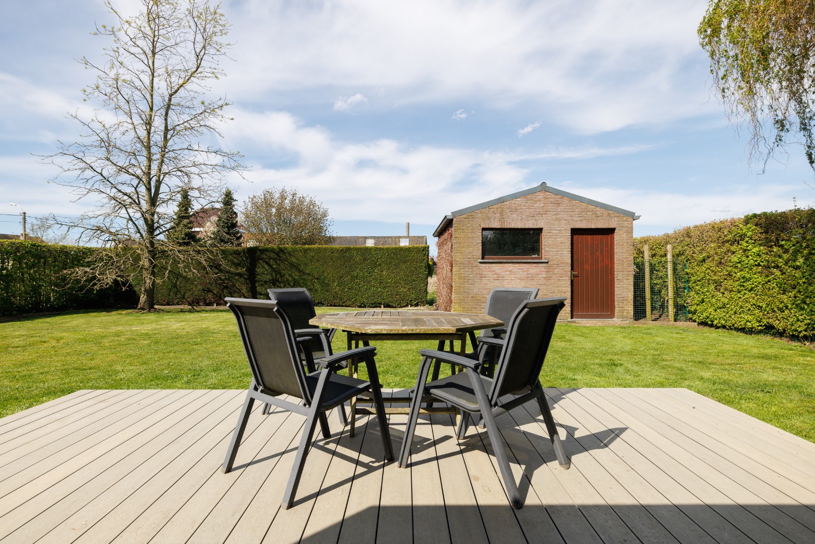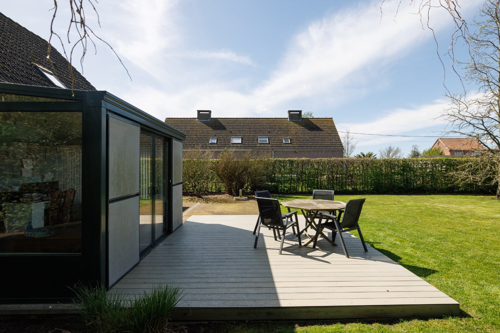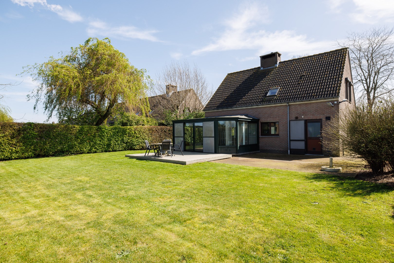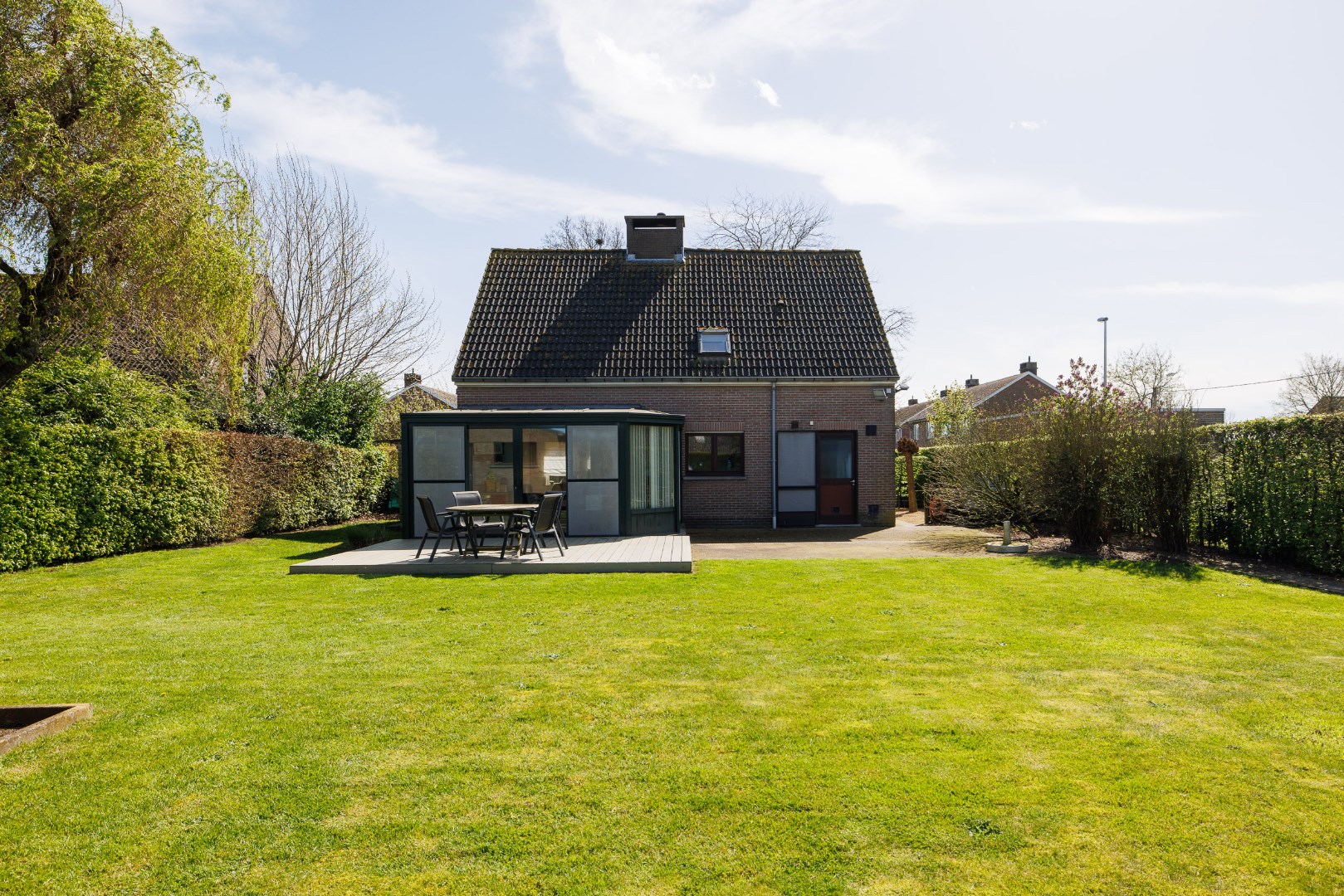 Deze woning bevindt zich net buiten het dorp van Lochristi in een rustige, brede, residentiële straat. De woningen staan allemaal iets verder naar achter op het perceel en een gemeentelijke groenaanleg aan de overzijde geeft een fijn ruimtelijk gevoel bij het binnenrijden van de straat. De woning werd gebouwd tussen 1995 en 1997 en heeft een ideale indeling als gezinswoning: er is een inkomhal met trap en apart toilet, een woonkamer met eetplaats en zithoek en een centrale houthaard, een ruime keuken en een aangebouwde veranda die de leefruimte vergroot. Naast de keuken is er een garage met wasplaats en technische berging. De woning beschikt ondermeer over een zonneboiler, een zonnepanelen installatie, een waterverzachter, stads- en putwater en een condenserende gasbrander. Boven zijn er rond de nachthal 3 slaapkamers, een berging en een vernieuwde badkamer. Er is eveneens een zolder aanwezig, toegankelijk via een trapluik, deze kan dienen als extra stockageplaats. De grote tuin heeft een volwassen groenscherm rondom en is gemakkelijk in onderhoud! Er is ook een vergunde tuinberging aanwezig en achteraan grenst de woning aan landbouwgebied. Vooraan is er voldoende plaats voor het parkeren van enkele wagens! Mits een opfrissing zoals herschilderen van de muren is deze woning perfect instapklaar! Voor meer info en het inplannen van een bezoek: 0485/321.842