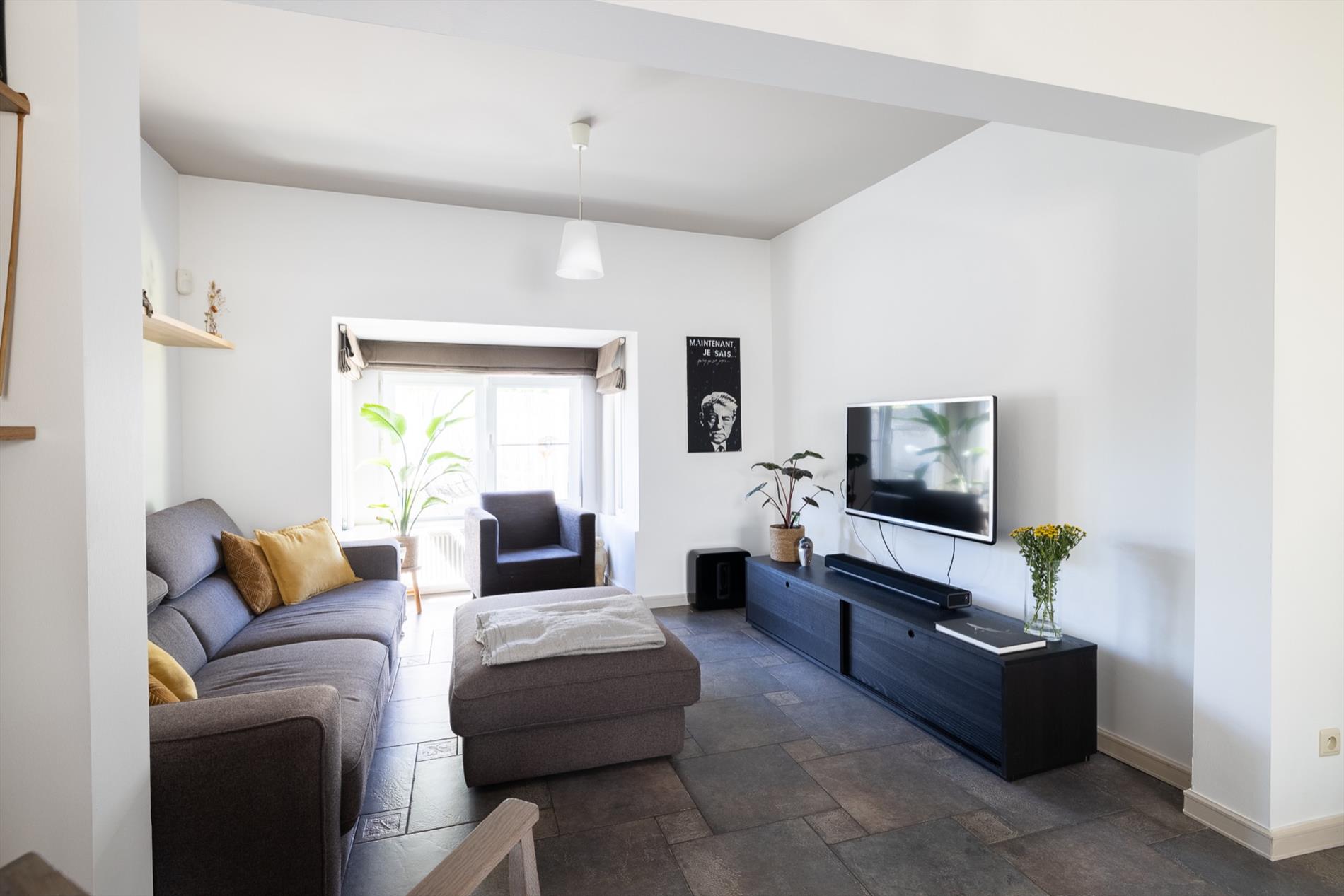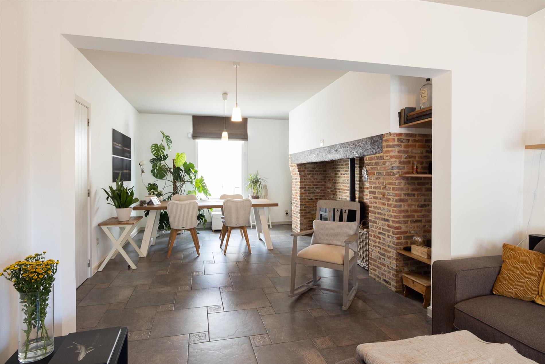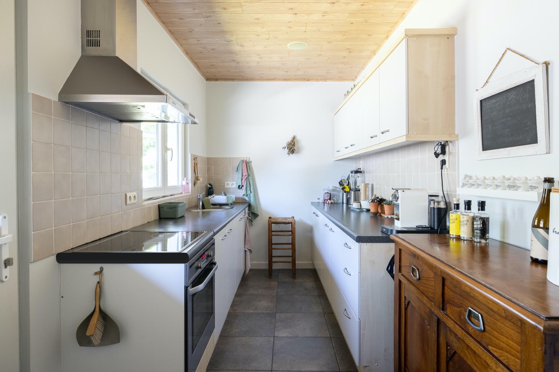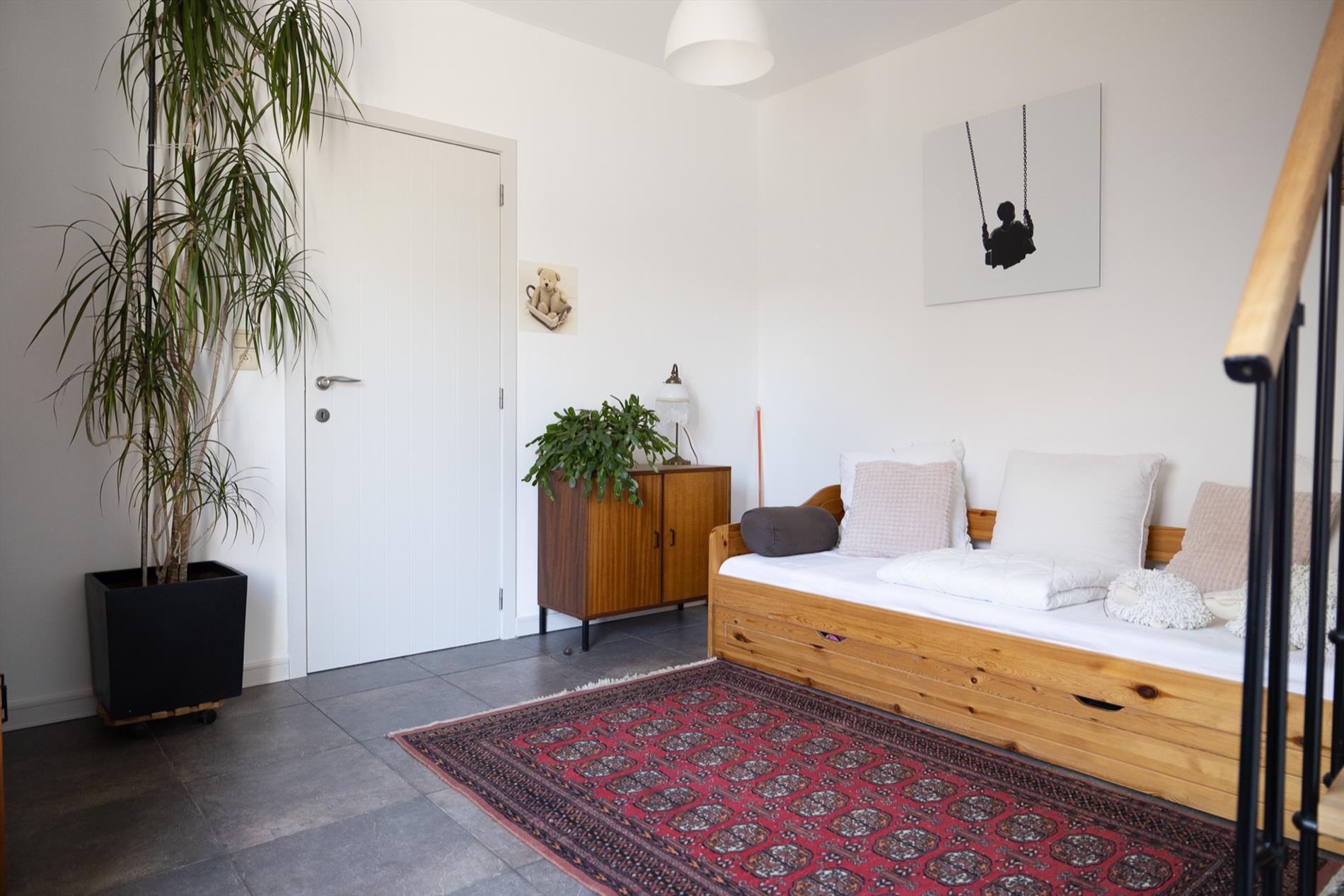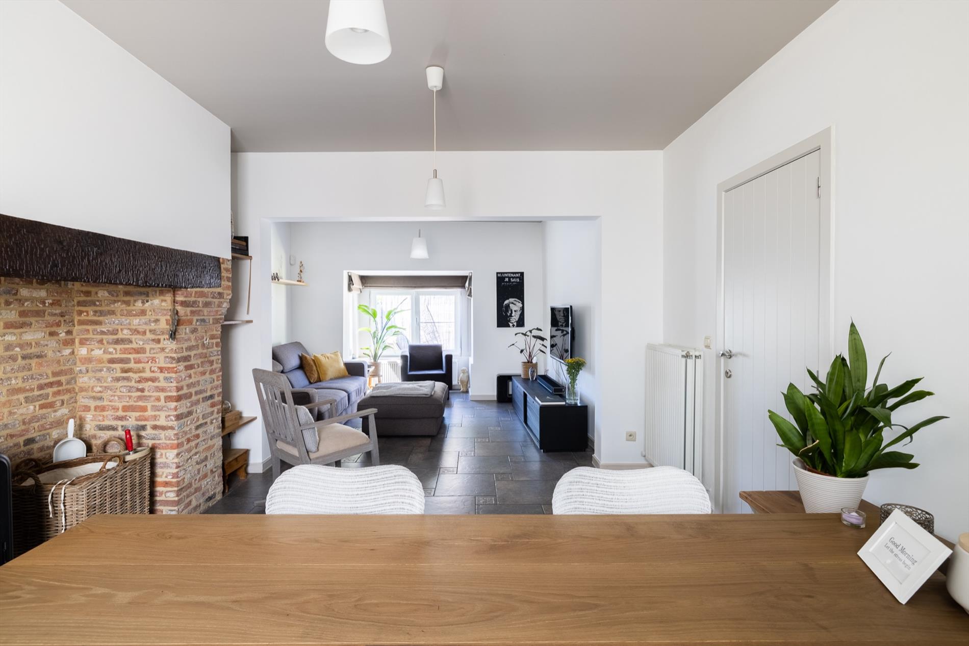 Deze charmante en mooi gerenoveerde woning bevindt zich in het dorp van Eksaarde, met een private ligging achterin de huizen aan de straatkant. De woning onderging in 2005 een grote renovatie waarbij zo goed als alleen de muren behouden bleven. Ook nadien werden nog renovaties uitgevoerd zoals de inrichting van een aparte bureauruimte, de aanleg van de tuin, het plaatsen van zonnepanelen e.a. Op het gelijkvloers is er een gezellige woonkamer met eet- en zithoek, waarbij de imposante schouw een ideale plaats is om een houtkachel te voorzien. De keuken is een aparte ruimte en geeft toegang naar het terras en de tuin. Er is meer dan voldoende bergruimte in de kelder en de voutekamer daarboven. Er is ook een aparte wasplaats aanwezig. Een kamer die dienst kan doen als vestiaire, logeerkamer of hobby/bureauruimte, geeft toegang naar de badkamer en de sfeervolle grote slaapkamer onder het dak. De ingerichte bureelruimte heeft vandaag ook een aparte ingang, maar kan mits het maken van een deurgat perfect verbonden worden met het woongedeelte waardoor het aantal slaapkamers ook kan vermeerderen voor iemand die geen apart bureel nodig heeft!. De charme van deze woning ligt in de gezellige ruimtes en net die atypische indeling! De woning is meer dan instapklaar en biedt heel wat troeven op gebied van onderhoudsgemak, privacy én de centrale ligging nabij alle nodige voorzieningen! meer info: 0485/321.842
