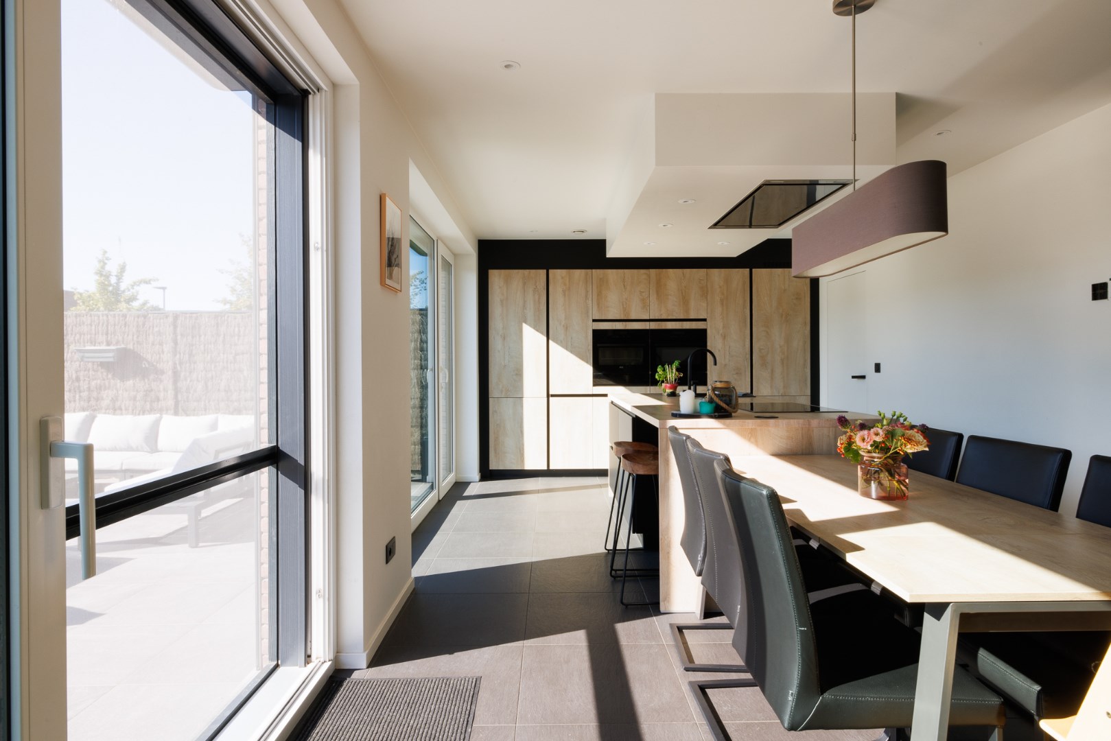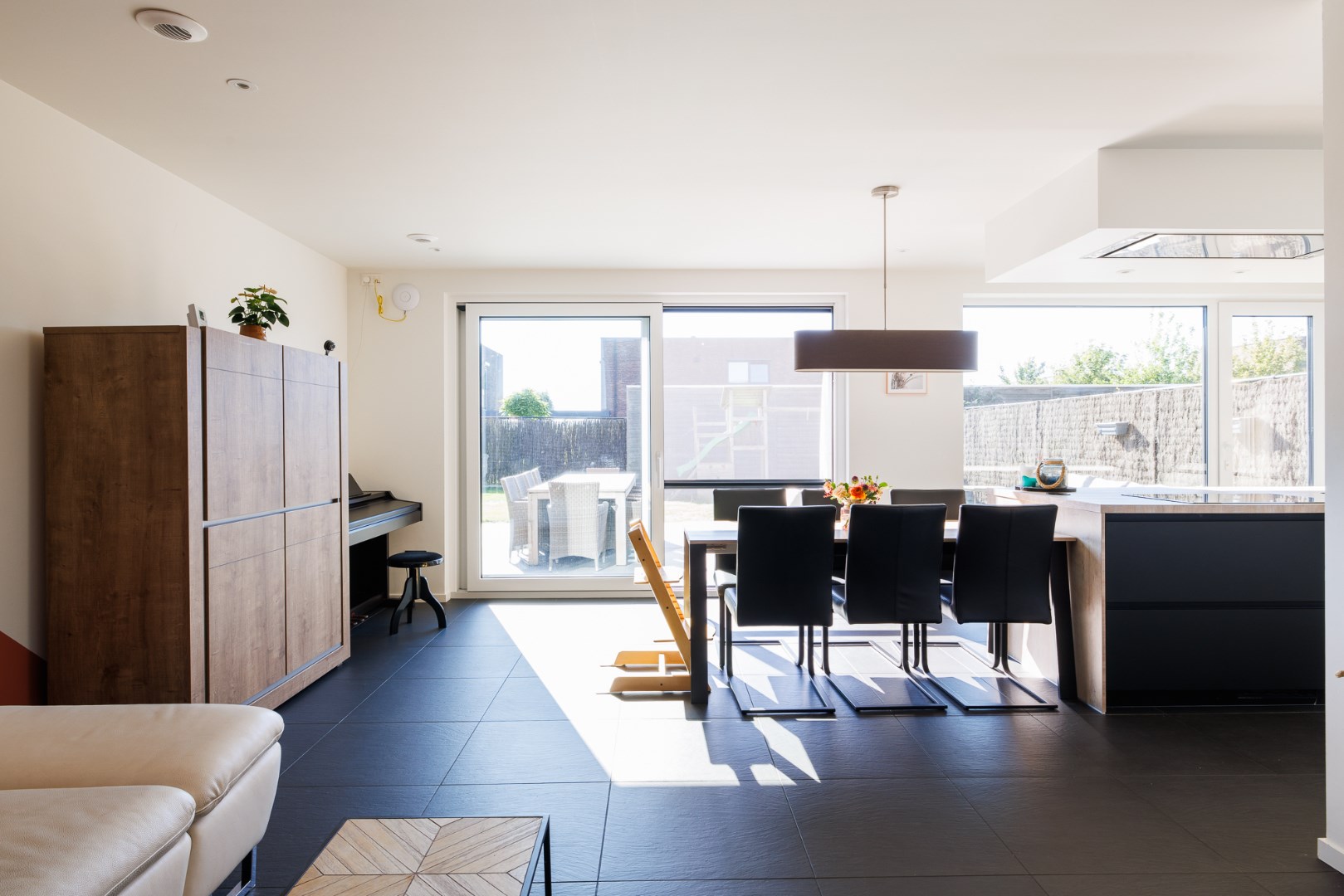 Net buiten Eke centrum met alle voorzieningen, bevindt zich deze recente woning van 2018. De jonge en veilige straat bestaat uit moderne woningen met een warme uitstraling. De afwerking van het huis voorziet in alle hedendaags comfort zoals zonnepanelen, automatisch gestuurde rolluiken, vloerverwarming beneden en boven, slimme verlichting van Philips Hue, sensoren,... ook op esthetisch vlak werd gekozen voor de betere materialen, schilderwerk, maar voornamelijk het maatwerk van ingebouwde kasten in alle slaapkamers en het bureel is een uitzonderlijke troef. Op het gelijkvloers bevindt zich de inkomhal met gastentoilet, traphal en toegang tot een bureau en de aangename woonkamer. De grote raampartijen en de ideale oriëntatie van tuin zorgen voor een natuurlijke lichtinval in de volledige ruimte. De inrichting van de keuken werd ook gekozen met het oog op kwaliteit bij dagelijks gebruik: AEG toestellen, een Aqualex kraan met opties ijskoud, direct heet of bruisend water, een traditionele oven in combinatie met stoomoven, een extra grote koelkast en opvallend veel kastruimte maken het verschil met een standaard afwerking. De grote berging dient als wasplaats, technische ruimte en extra stockage. Boven zijn er 3 mooie slaapkamers met grote ramen en voldoende ingebouwde kastruimte. Er is een extra berging, apart toilet en een erg ruime gezinsbadkamer. De tuin beschikt over tuinverlichting, een terras, een tuinberging en er is een carport aanwezig. Absolute topper in Nazareth!