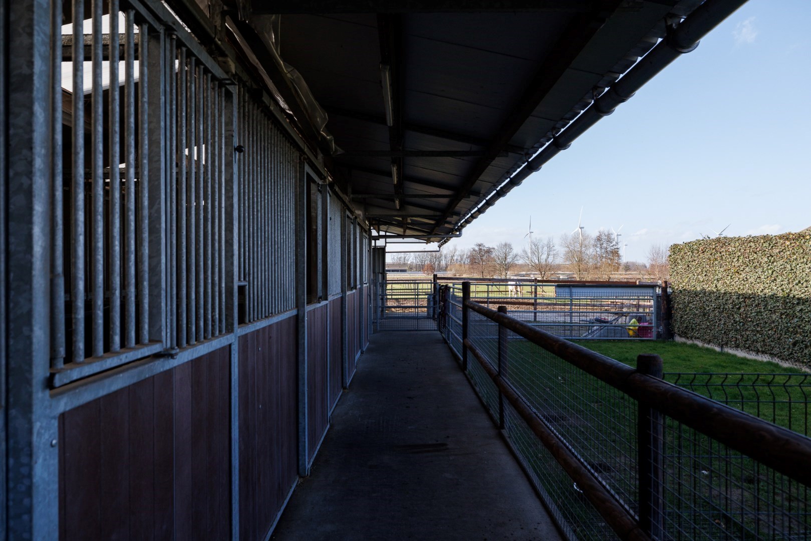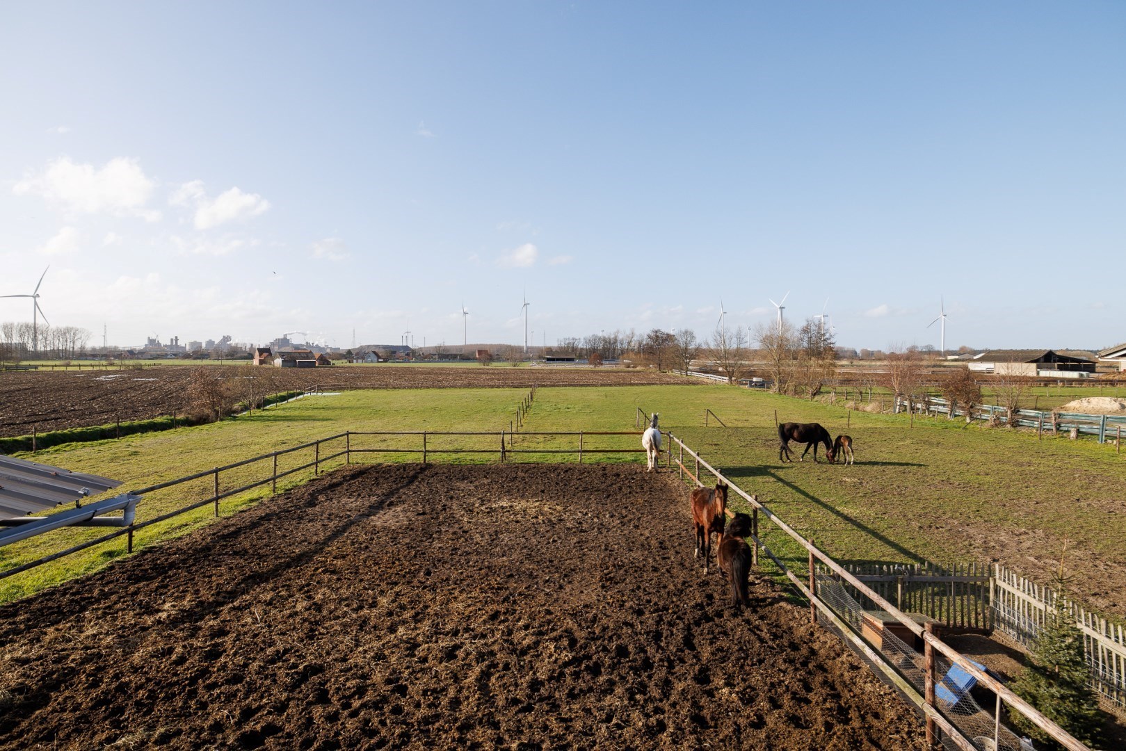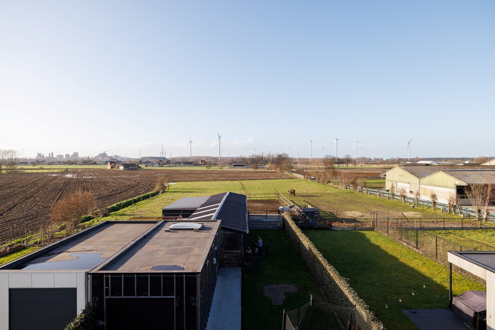 Deze eigendom bevindt zich tussen de dorpen van Wachtebeke en Sint-Kruis-Winkel. De woning werd afgewerkt in 2018 en is voorzien van alle moderne technieken. De houtskeletbouw wordt verwarmd met een warmtepomp via geothermie en vloerverwarming, heeft een airco module voor 5 units en ook zonnepanelen (Epeil van 11 - klasse A). De oriëntatie van de woning zorgt voor een hele dag zonlicht en de indeling is ook gericht op dagelijks en functioneel gebruik, er zijn op het gelijkvloers zowel een wasplaats als een voorraadberging, boven zijn er 3 mooie ruime slaapkamers en een badkamer en ook de zolder biedt nog plaats aan een grote slaapkamer én een stockageruimte. De aanleg rond de woning zorgt eveneens voor een groot gebruiksgemak: voldoende parkeerplaats, een mooie groenaanleg, oprit met drainage, poort met magneetslot, sproeisyteem voor het gazon… De grote garage is voorzien van een automatische sectionaalpoort. Deze ruimte is deels ingericht als een werkplaats, maar de wanden zijn makkelijk weg te nemen of te verplaatsen. De 4 paardenstallen beschikken over elektriciteit en verlichting, geïsoleerde dakpanelen, automatische drinkbakken (putwater), er is ook internet voor eventuele videobewaking. Vanaf de stallen er er toegang naar de paddocks en de mooie weides. Ook is er nog een uitweg aan de achterkant die toegang met een grotere tractor mogelijk maakt. Het gemak van deze accommodatie zo dicht bij huis te hebben is enorm! Voor meer info: 0485/321.842